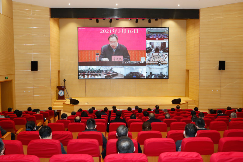 3月16日下午,学校在镇江长山校区行政楼100号报告厅和张家港校区行政楼603会议室设立分会场,组织参加全省教育系统党史学习教育动员视频会议,校领导班子成员、处级以上党员干部参加了会议。
