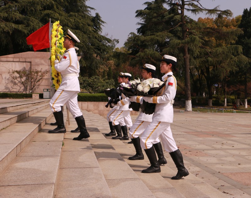 16名优秀深蓝学子身着统一红军服装,列队行军至镇江市烈士陵园,体验红军长征路程,缅怀革命烈士。纪念碑前,2018级预备党员蔡志尚同学还为现场同学上了一堂生动的“信仰公开课”。他说,“不能忘记,走过的路;不能忘记,走过过去;不能忘记,为什么出发……要提前规划好自己的大学生活,以革命先辈精神激励新时代青年奋发有为、不断进取”。