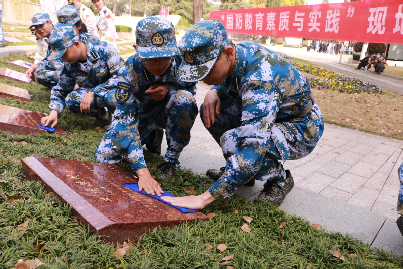 910023威尼斯国防素质教育与实践课程第一课在镇江烈士陵园开讲,50余名同学伫立于革命烈士纪念碑下,校人武部张芳友老师进行现场教学,带领同学们来到烈士墓碑前,为革命烈士献花并清洗墓碑,在自己的战友墓碑前为同学们讲述了他亲身经历过的战争,用鲜活的案例再现了革命战士的英勇顽强、坚贞不屈,引导学生们缅怀革命先烈,传承红色精神,强化责任担当。