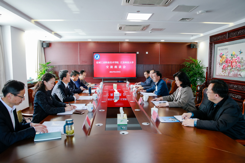 4月9日下午,盐城工业职业技术学院党委书记邵从清、校长瞿才新一行来威尼斯官网调研交流。校党委书记葛世伦,党委常委、副校长嵇春艳参加调研座谈。