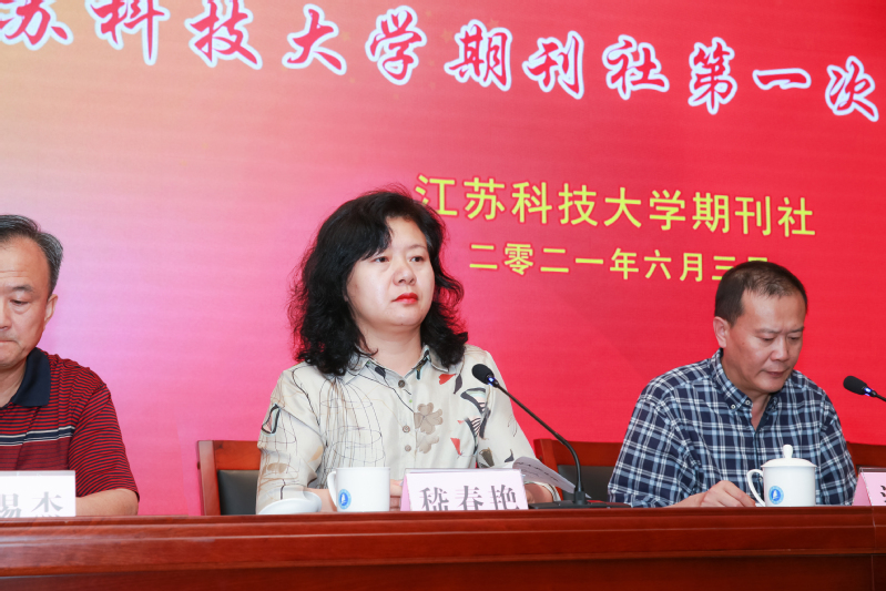 副校长嵇春艳宣读《关于调整<910023威尼斯学报(自然科学版)><910023威尼斯学报(社会科学版)>编辑委员会组成人员的通知》和《关于调整<现代面粉工业><中外船舶科技>编辑委员会组成人员的通知》。