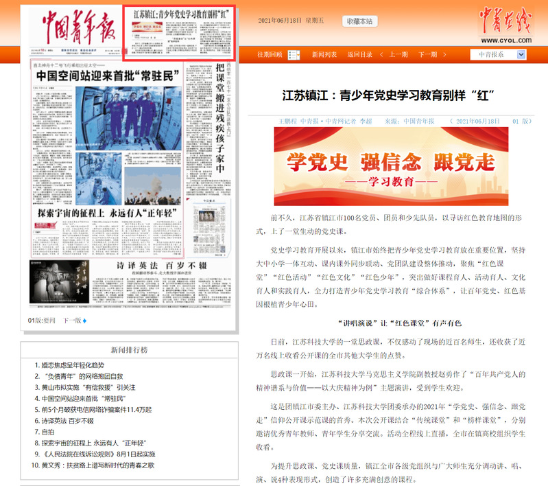 为提升思政课、党史课质量,镇江全市各级党组织与广大师生充分调动讲、唱、演、说4种表现形式,创造了许多充满创意的课程。