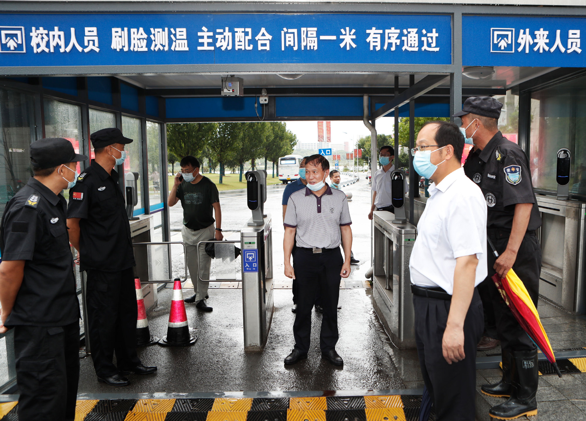 7月26日下午,校党委书记葛世伦、党委副书记许俊华一行检查学校疫情防控、防汛防台工作。党办校办、后勤管理处、保卫处、国资处、学生处、基建处等部门负责同志参加检查。