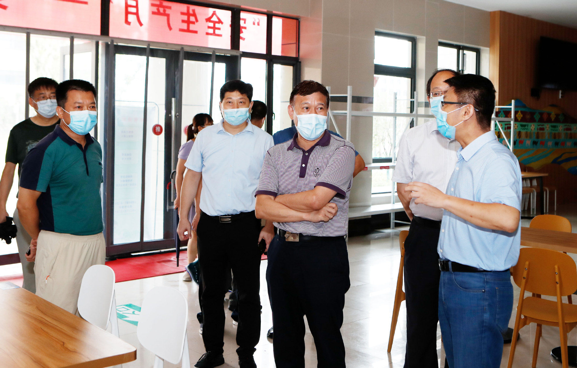 每到一处,葛书记边仔细查看边认真听取各部门值班安排、人员管控、物资配备、现场管理、消毒消杀等疫情防控工作汇报,检查了留校学生安全管理、住宿服务、食堂伙食等暑期生活保障工作。葛书记强调,要抓实抓细常态化疫情防控措施,严格遵守各级疫情防控规定;要加强研究细化工作方案,完善相关工作机制,进一步细化排查、严格管理,力争把此波疫情影响降到最低。