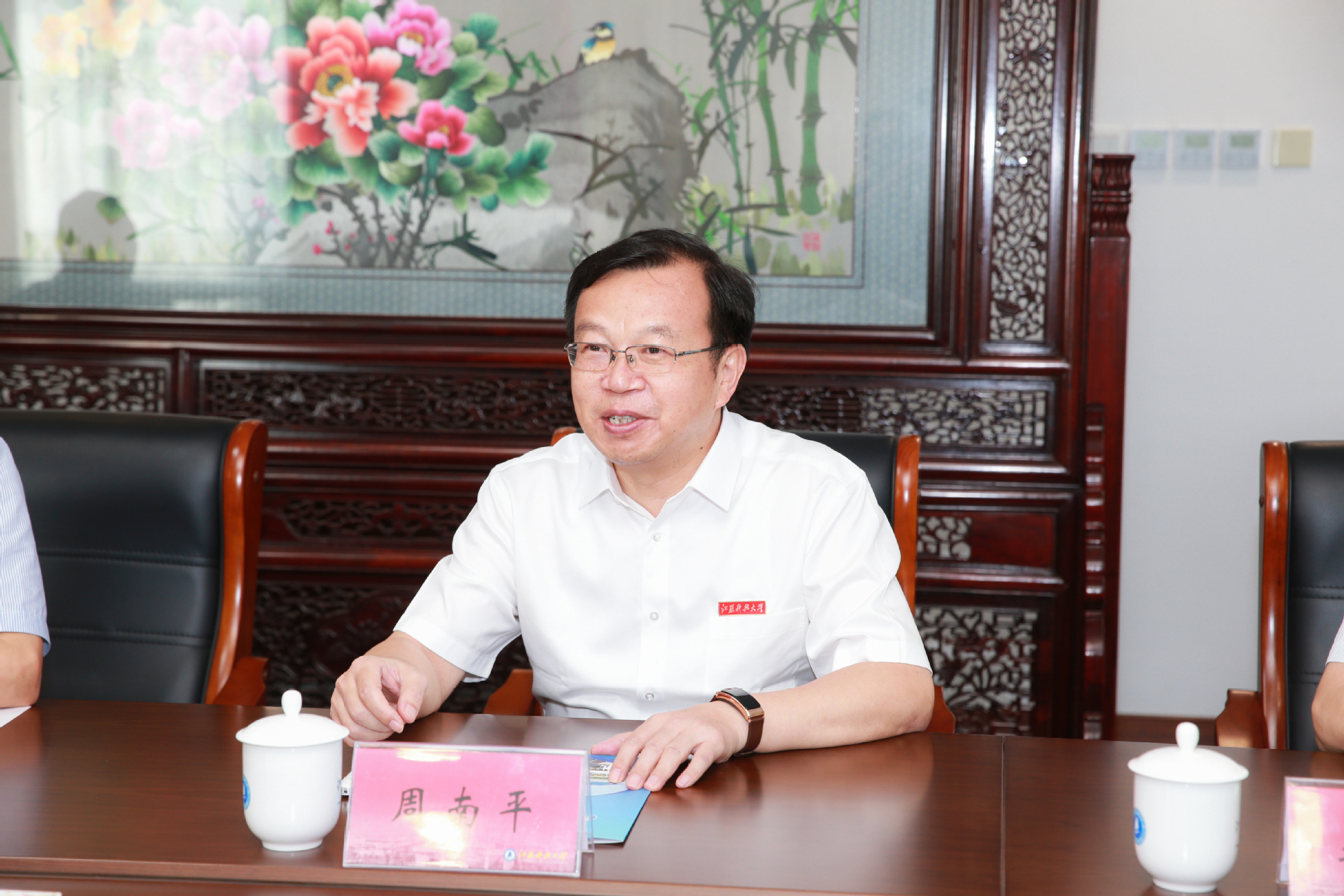 9月15日下午,全国人大常委会委员、农工党中央专职副主席杨震一行来校考察调研。江苏省政协副主席、农工党省委主委周健民,江苏省政协副秘书长,农工党省委专职副主委吴建坤,校党委书记葛世伦,校长周南平出席座谈会。