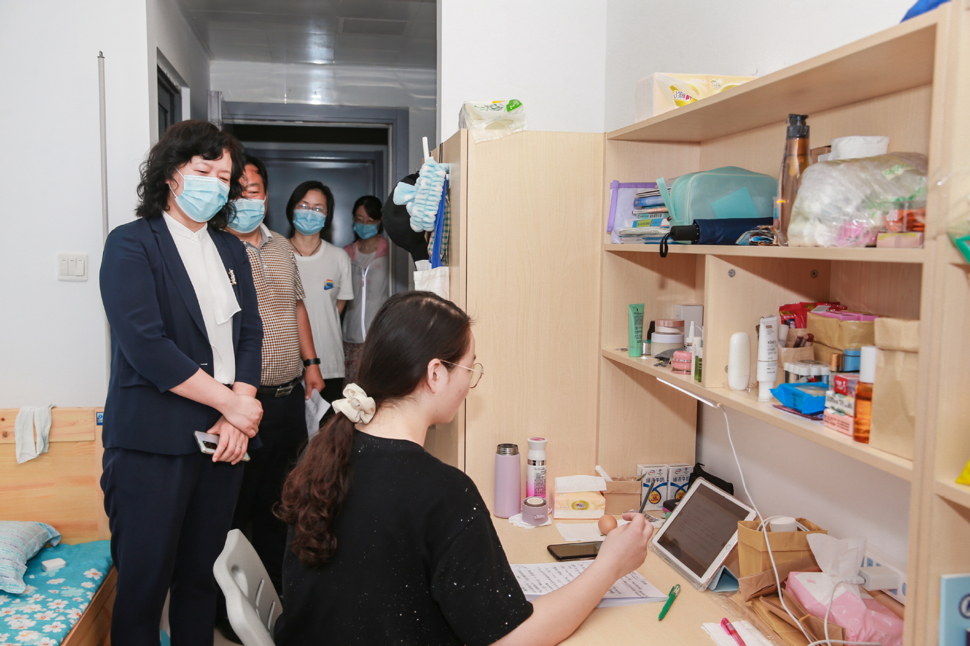 9月27日,嵇春艳副校长带领研究生院、党委研究生工作部等部门负责人深入到教师办公室了解老师线上教学开展的情况,针对目前线上教学的效果、学生的到课率、线上教学存在的困难和问题等情况,嵇校长与任课老师进行了亲切的沟通和交流。之后,嵇春艳副校长来到了学生宿舍,亲切询问研究生的学习和生活困难,走访了解研究生新生的线上学习效果。