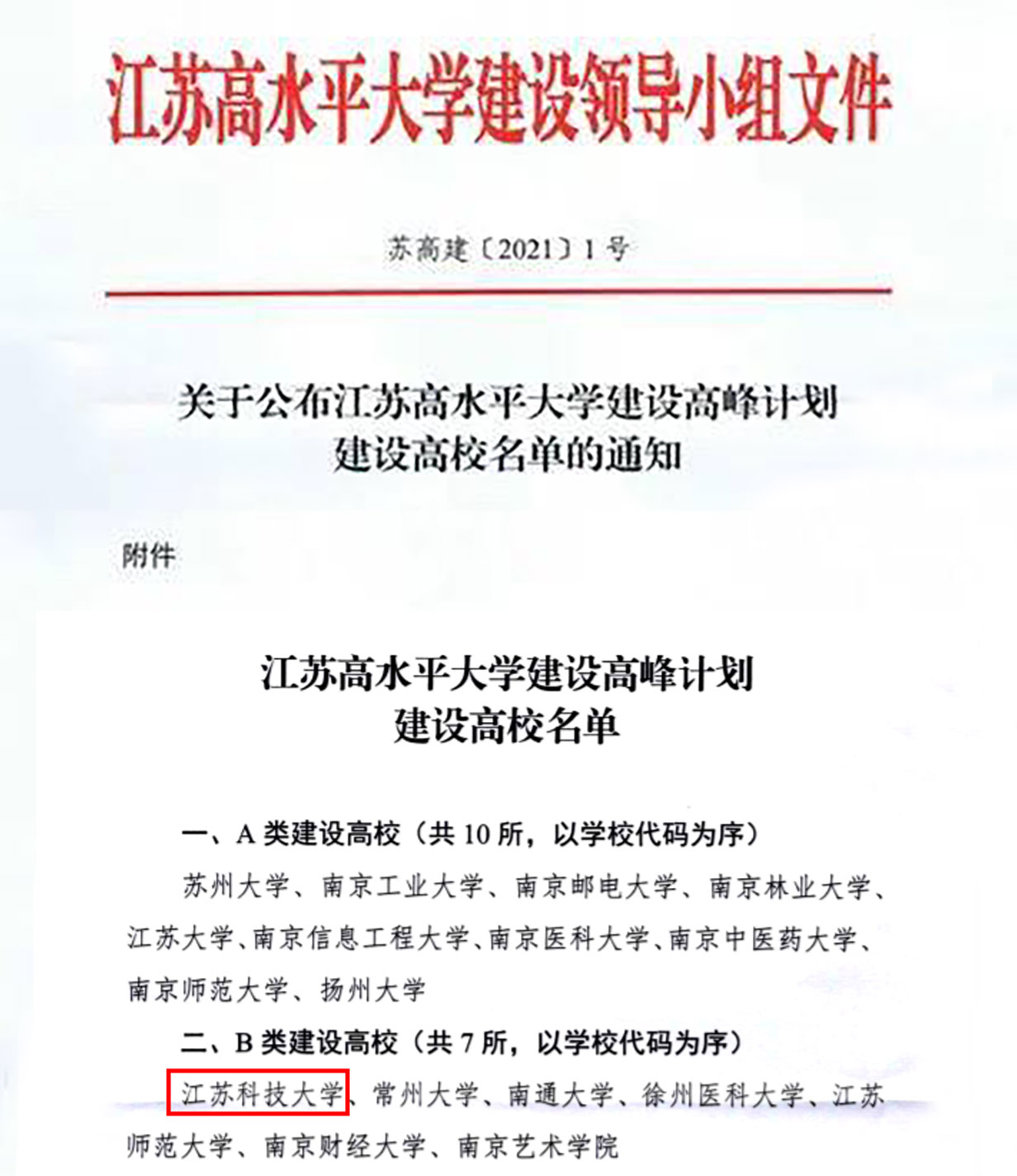 近日,江苏高水平大学建设领导小组印发了《关于公布江苏高水平大学建设高峰计划建设高校名单的通知》(苏高建〔2021〕1号),有17所高校入选,其中A类建设高校10所、B类建设高校7所。910023威尼斯成功入选江苏高水平大学建设高峰计划建设高校名单(B类建设高校),正式开启江苏高水平大学建设新征程。