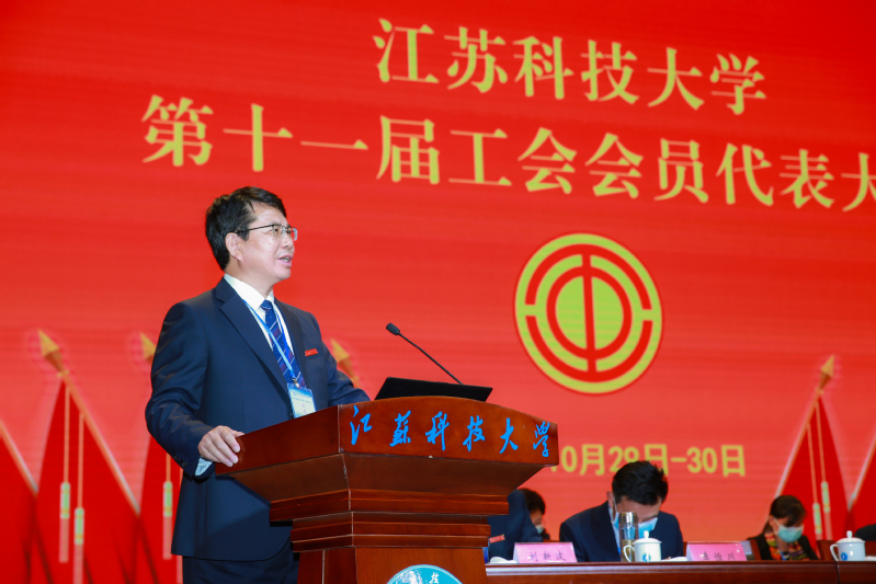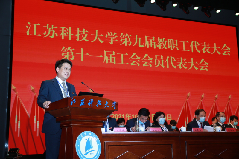 大会号召,全体师生员工要统一思想认识,深入贯彻习近平新时代中国特色社会主义思想、党的十九大和十九届二中、三中、四中、五中全会精神,全面贯彻党的教育方针,精准把握国家、行业发展大势,准确把握发展海洋经济推进建设海洋强国的战略机遇,紧紧抓住学校入选江苏高水平大学建设高峰计划建设高校的新机遇,以更加昂扬的斗志、更加饱满的热情,凝心聚力,砥砺奋进,为实现学校高质量发展、早日建成“国内一流造船大学”而不断努力奋斗!