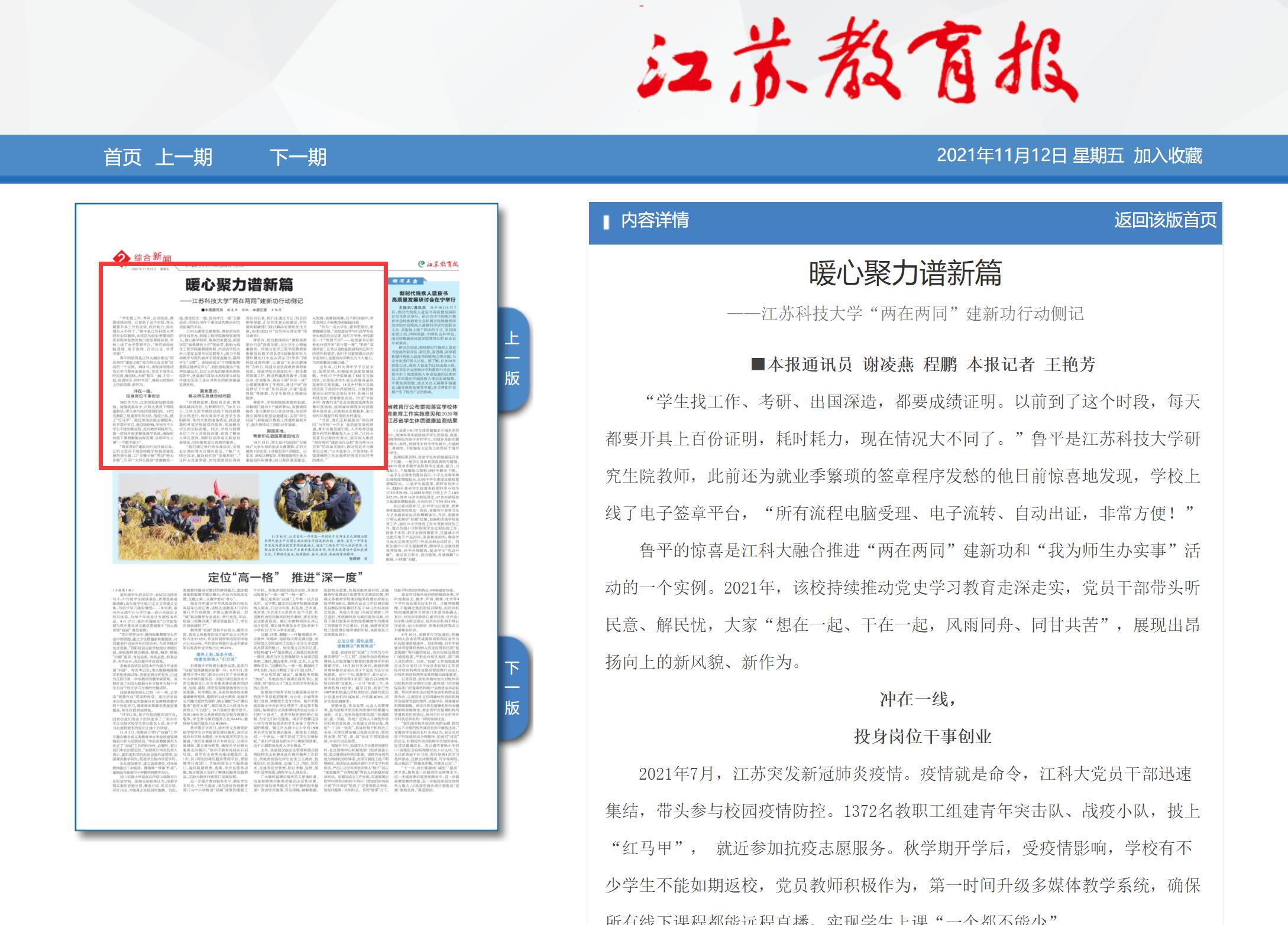江苏教育报 2版头条 2021-11-12 http://epaper.jsenews.com/Article/index/aid/5342515.html