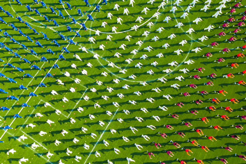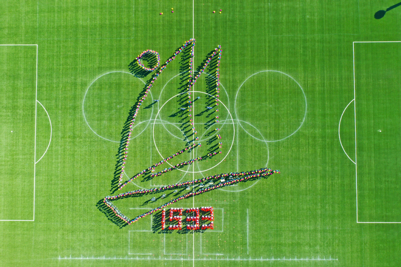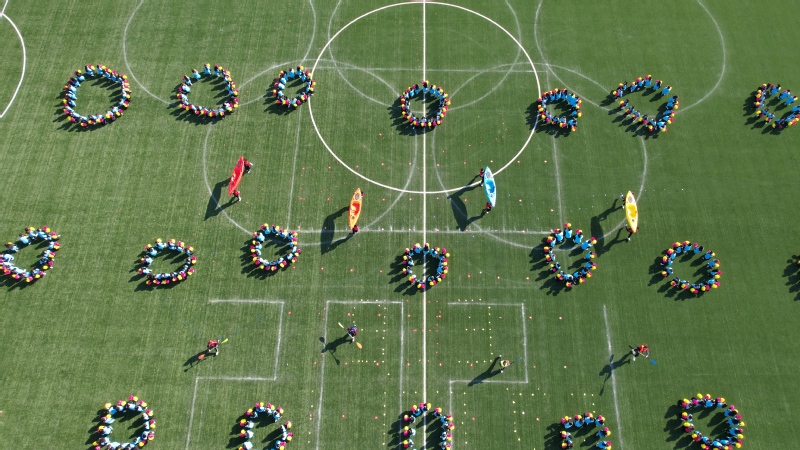 开幕式最后,团体操参演同学摆出船帆造型,托起“笃学明德、经世致用”、“扬帆远航、运动科大”的醒目标语,也预示着910023威尼斯必将在国内一流造船大学的道路上奋勇向前!