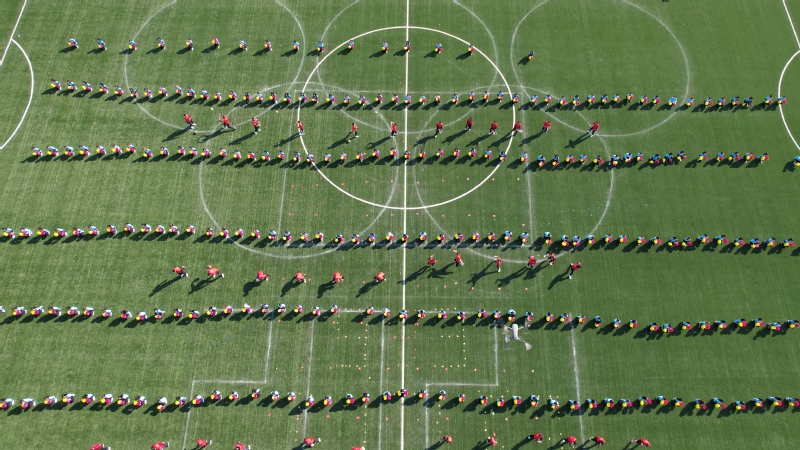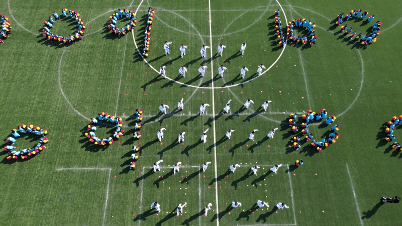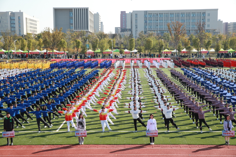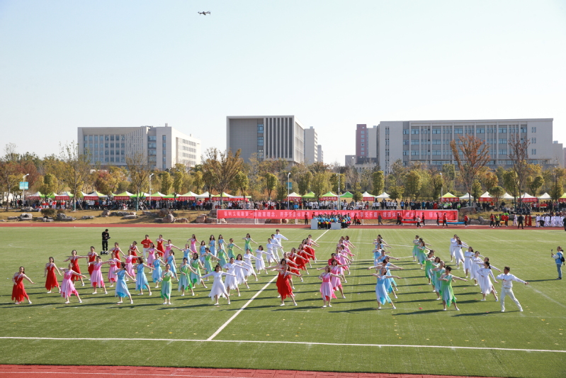 精彩的教学成果展示是今年开幕式的一大亮点。各学院组成的广播操、太极拳表演,以及由邱岚、刘圣圣等体育教师负责编排的教职工广场舞、大型团体操表演项目相继开展。