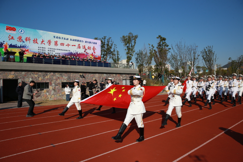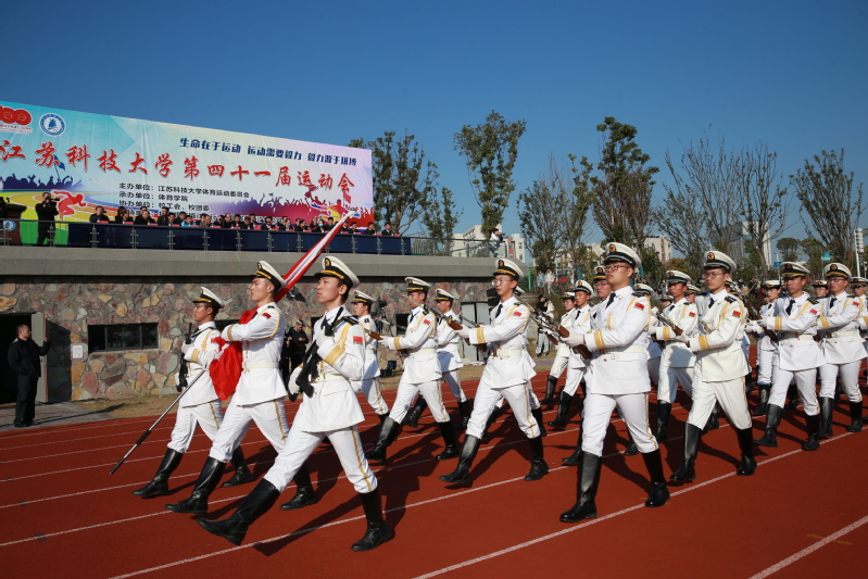 伴随着激昂的运动员进行曲,国旗、校旗方队,18个学院的运动员在各学院学工领导的带领下,身着整齐的服装,迈着铿锵有力的步伐依次入场,彰显了江科大学子积极昂扬、拼搏不息的精神风貌。