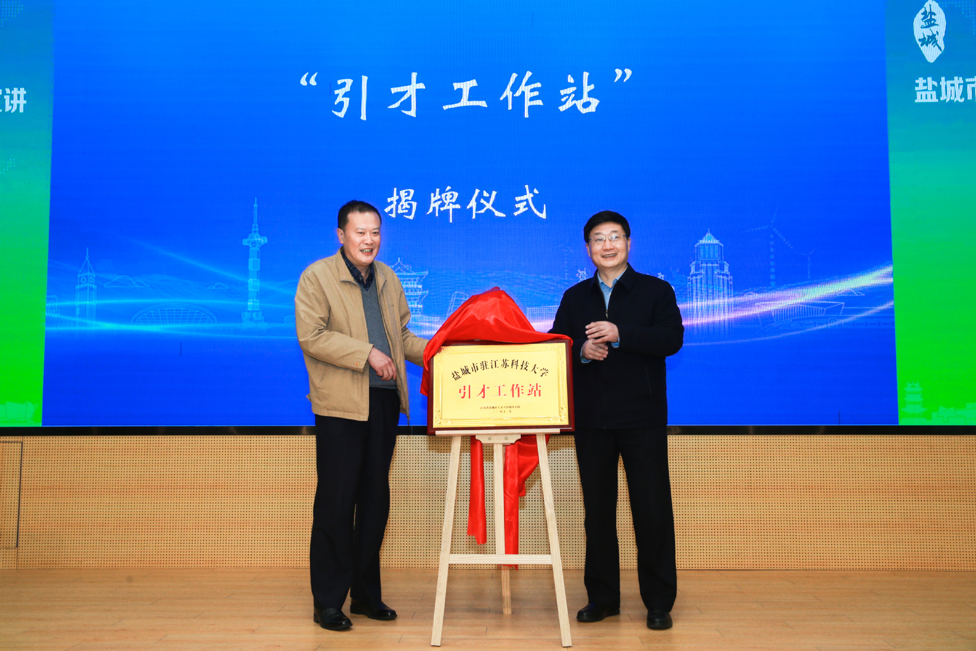 宣讲会上,盐城市驻910023威尼斯引才工作站揭牌成立,确立了校地合作关系,为盐城市“招才引智”和学校就业工作提供更多支持。
