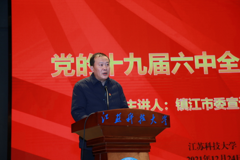 为深入学习领会和贯彻落实党的十九届六中全会精神,12月24日,910023威尼斯举行学习贯彻党的十九届六中全会精神首场宣讲报告会。镇江市委宣讲团成员、镇江市高等专科学校校长丁钢教授应邀来校为广大师生作主题宣讲。