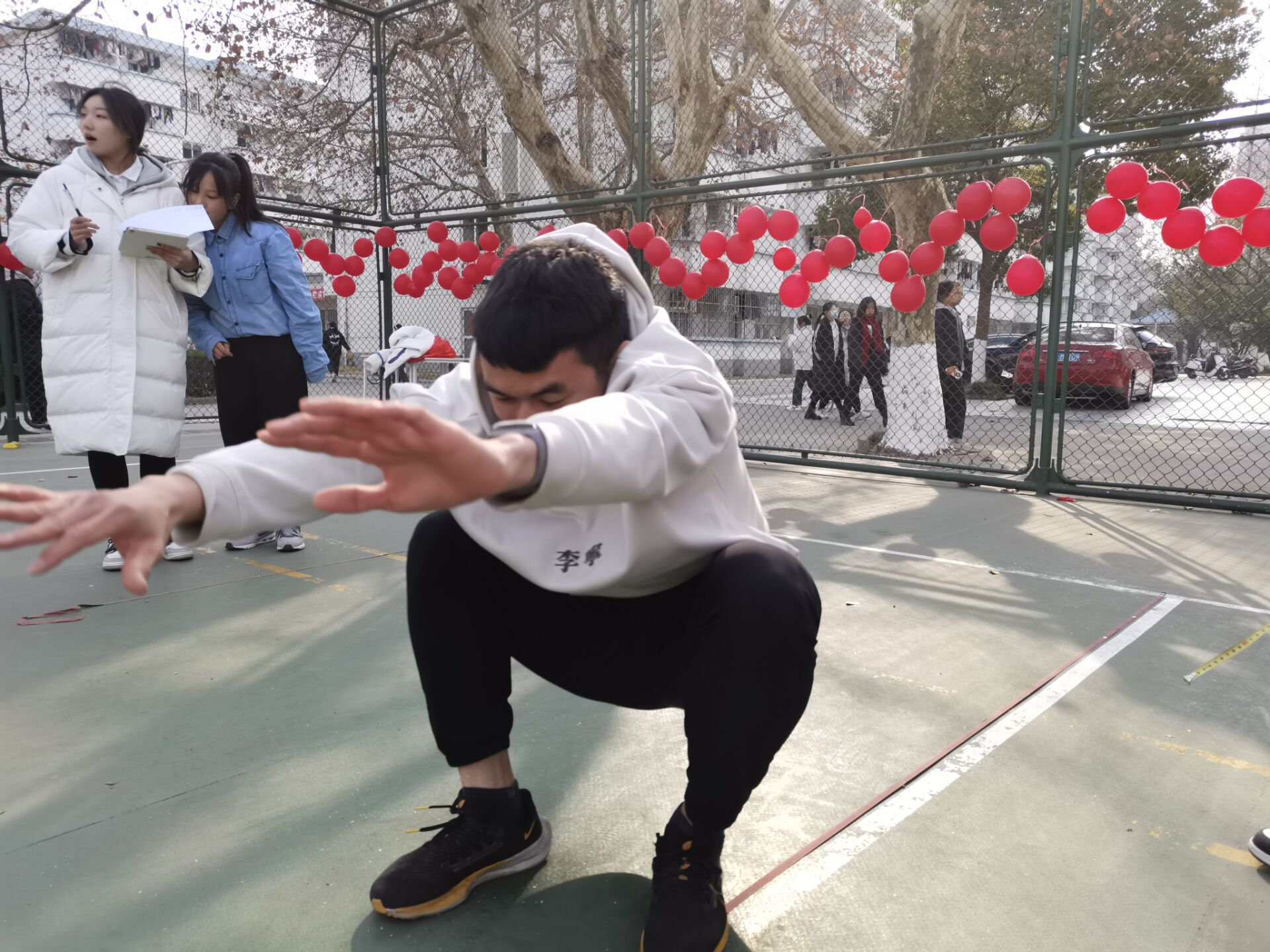 排球场中,“碰碰虎”“跳跳虎”“摇摇虎”三个项目的比赛紧张有趣,以专业大类为单位,进行着踩气球、立定跳远和跳绳的比赛。比赛中,同学们不仅体验着竞赛的趣味性,同时又加强了体育锻炼,更从中感受到了迎新年的热闹。看似简单普通的三项娱乐性比赛,却足以给同学们带去欢笑,让同学们沉浸在丰富多彩的校园文化当中。