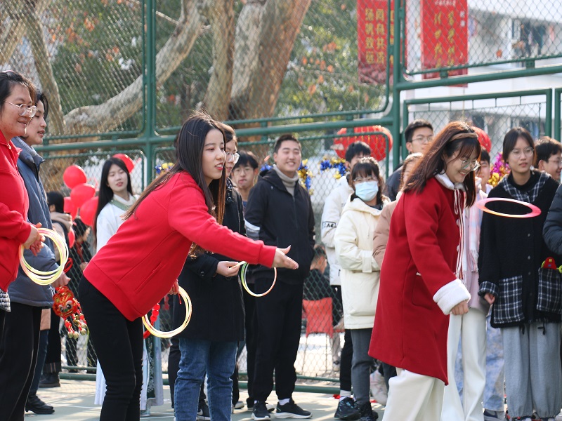 “套年偶”的现场热闹非凡。经过扩音喇叭的“有力宣传”,活动开始前就吸引了大批同学围观,场地旁早早排起了长龙。地上整齐地摆着糖果、零食和年味小玩偶,套到即可带走,同学们一个个玩得不亦乐乎。兼备趣味性和热闹性的“套年偶”活动也将整个文化节推向了一个小高潮,让同学们充分体会到文化节的乐趣。