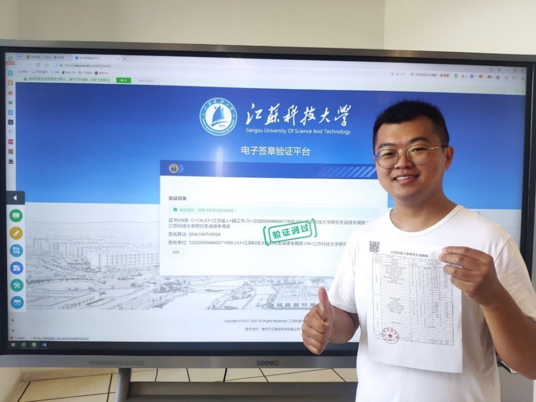 “原来开成绩证明需要线下办理,现在只需要有一台电脑,鼠标点一点,动动手指,足不出户,盖好章的成绩证明就可以下载打印了,真是太方便了!”江科大计算机学院的胡勇同学在开具成绩证明时连声称赞。