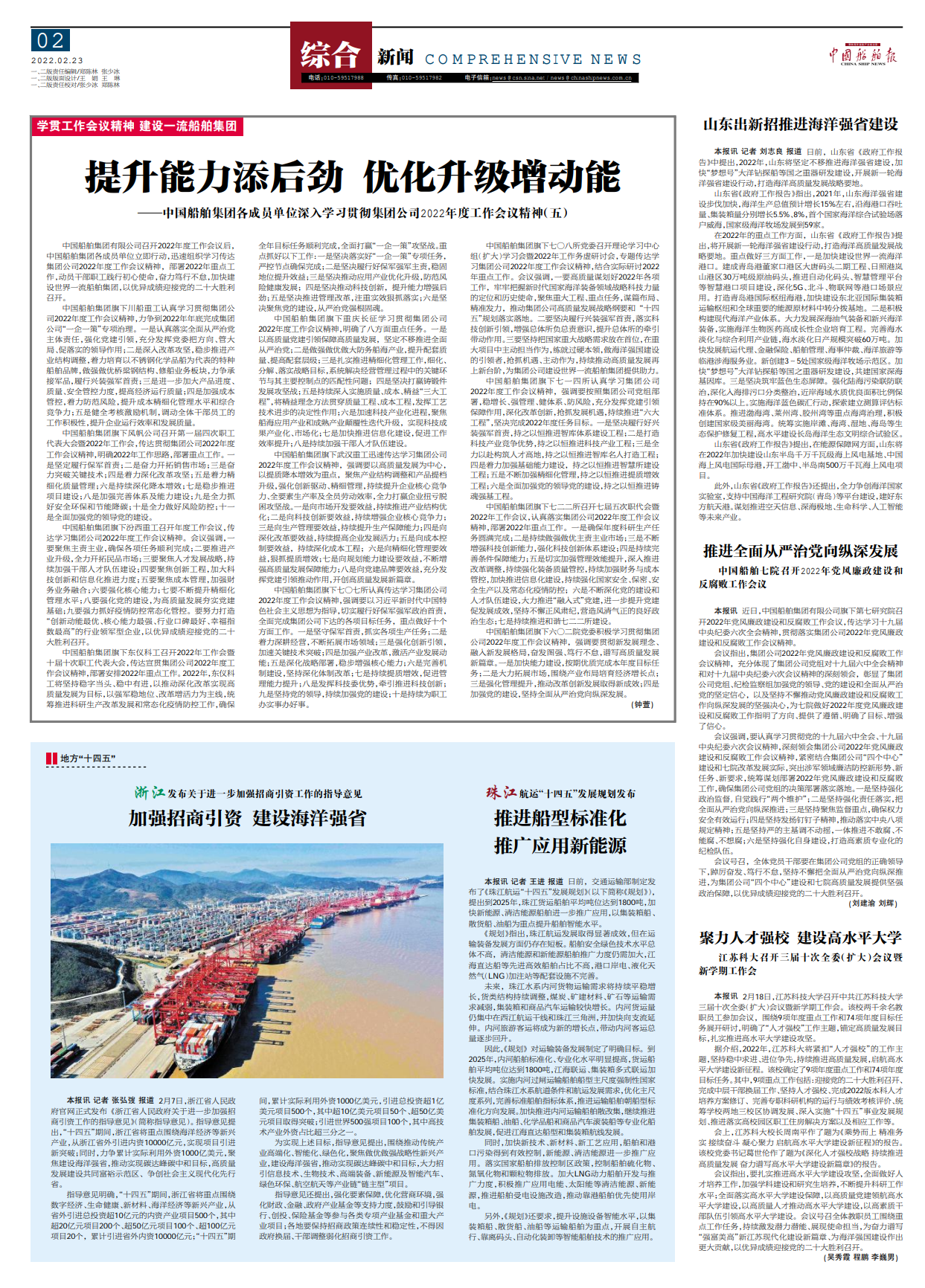 会上,江苏科大校长周南平作了题为《乘势而上 精准务实 接续奋斗 凝心聚力 启航高水平大学建设新征程》的报告。该校党委书记葛世伦作了题为《深化人才强校战略 持续推进高质量发展 奋力谱写高水平大学建设新篇章》的报告。