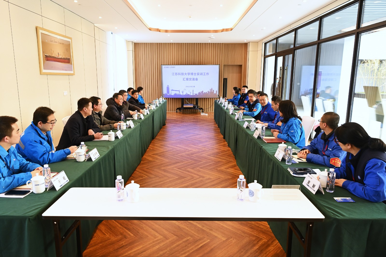 2月23日下午,景旭文一行来到江南造船公司。江南造船公司总经理黄文飞、人力资源部部长罗厚毅、江南造船公司江南研究院副院长李小灵和相关部门负责人,与威尼斯官网来访人员展开工作交流。