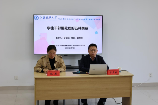 为进一步提高大学生心理素质,关注学生疫情防控期间的身心健康,促进学生健康成长,材料学院于4月7日下午开展“向阳携行 共创未来”大学生心理健康主题教育系列讲座之学生干部要处理好五种关系。本次讲座特邀910023威尼斯心理健康教育中心主任于立东副教授主讲,讲座采用线上和线下结合的形式举行,20名学生干部线下参加讲座,近90名学生干部通过腾讯会议线上聆听了讲座,讲座由材料学院党委副书记赵莉主持。