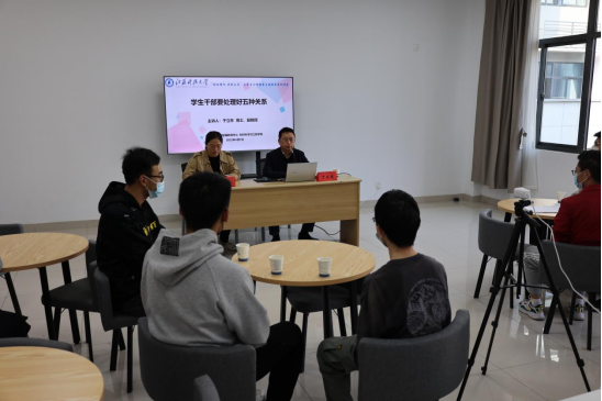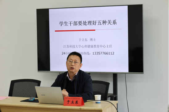 于立东从五个方面讲述了作为学生干部应处理好的关系。一是弄明白“意识与行动的关系”,他从心理学角度解释了什么是意识,强调了作为学生干部要有干部意识,要认清身份,明确立场,具备做事能力和行动意识。二要理清楚“干部和群众的关系”,学生干部来自于学生要做学生的表率,正如国家离不开人民,干部离不开群众,在做事时要和同学打成一片,更要以身作则、顾全大局,坚守原则和底线。于主任以实际案例警示各位学生干部在工作中要做到信息真实有效,尤其是疫情防控期间要关注学生思想动态,及时汇报。三要把握好“学生和老师的关系”,所谓“闻道有先后,术业有专攻”,学生干部要多和老师、榜样学习,练就过硬本领。四要处理好“学习与工作的关系”,作为学生干部要明确自己的身份始终是学生,学习永远是第一位。五要认识到“表达和表现的关系”,表达是人的基本属性,表达的物质基础就是表现,工作中需要表达,更需要表现。最后他解答了学生的提问。