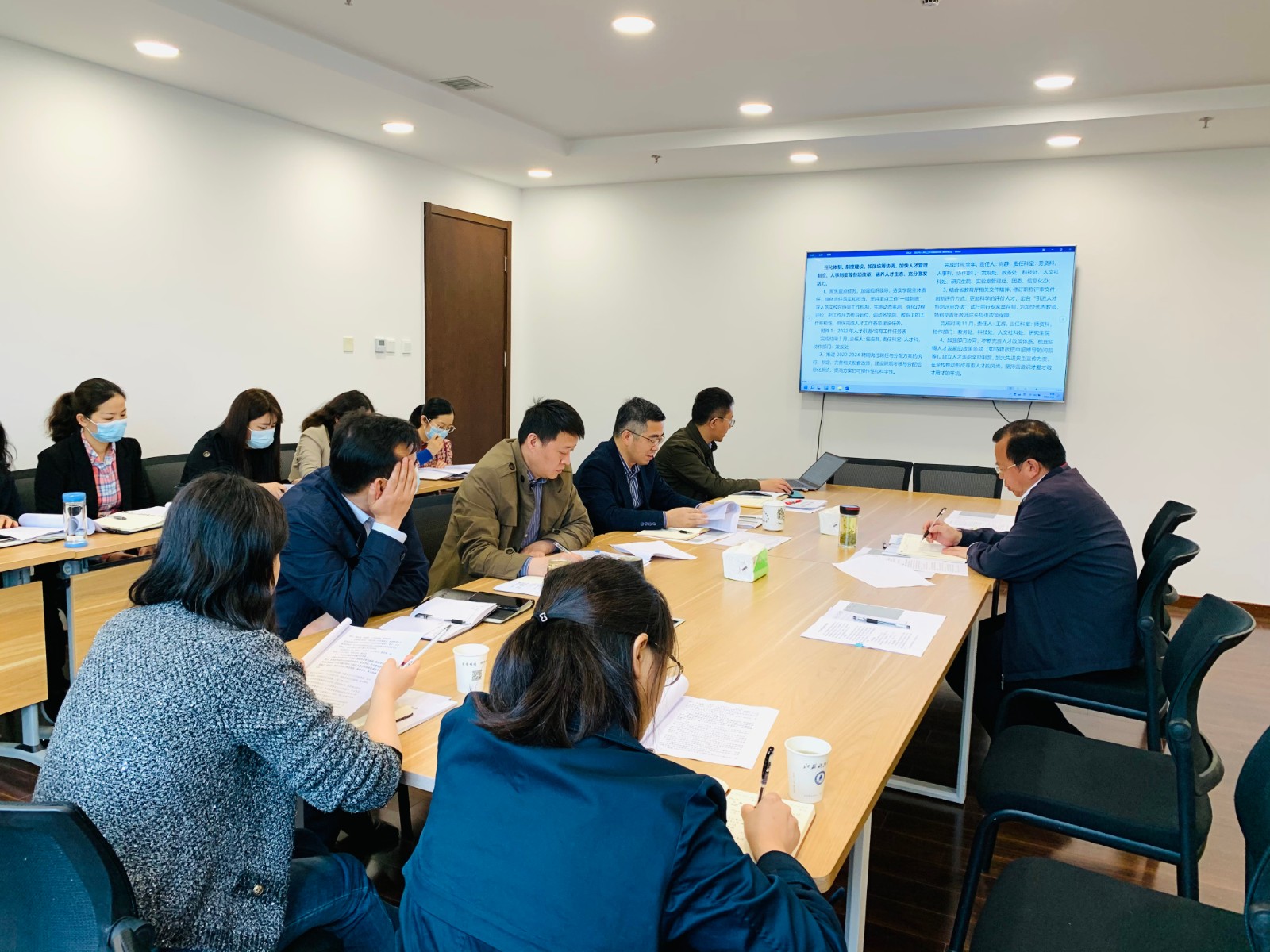 朱志宇处长围绕学校“人才强校”工作主题,汇报了2022年人事处工作目标、存在的主要问题、工作举措、阶段性成效及建议,重点介绍了人事处在体制、制度建设,师资队伍建设和高端人才引进工作上的创新举措。人事处相关同志针对人才工程申报、人才引进、职称评审、岗位聘任、工资管理等工作进行了补充汇报。