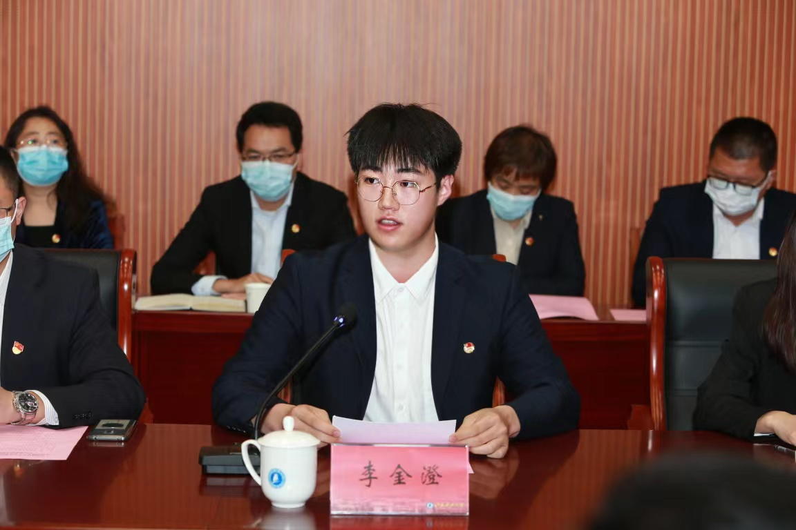 “立志在科研中锤打,在学习中进步,在实践中成长,在服务和奉献中绽放,争做理想远大、信念坚定的模范,争做刻苦学习、锐意创新的模范,争做敢于斗争、善于斗争的模范,争做艰苦奋斗、无私奉献的模范,争做崇德向善、严守纪律的模范,坚定不移听党话、跟党走,把青春融入学业、事业全过程,努力为威尼斯官网建设国内一流造船大学而奋斗,努力为实现中华民族伟大复兴中国梦而奋斗!”全国优秀共青团员、船舶与海洋工程学院2018级本科生李金澄,中国大学生自强之星、材料科学与工程学院2018级本科生王程程结合自身学习工作经历分别汇报了学习体会。