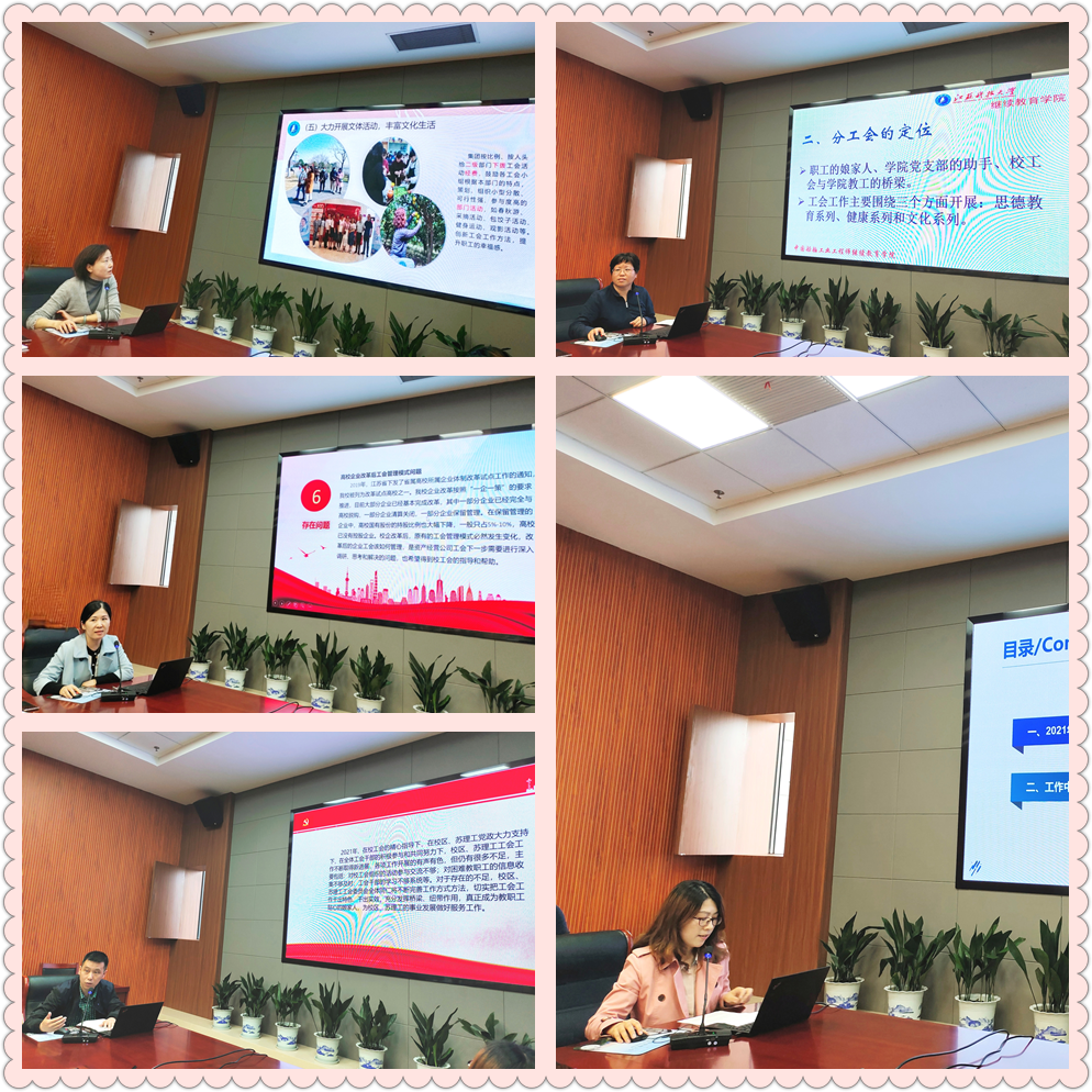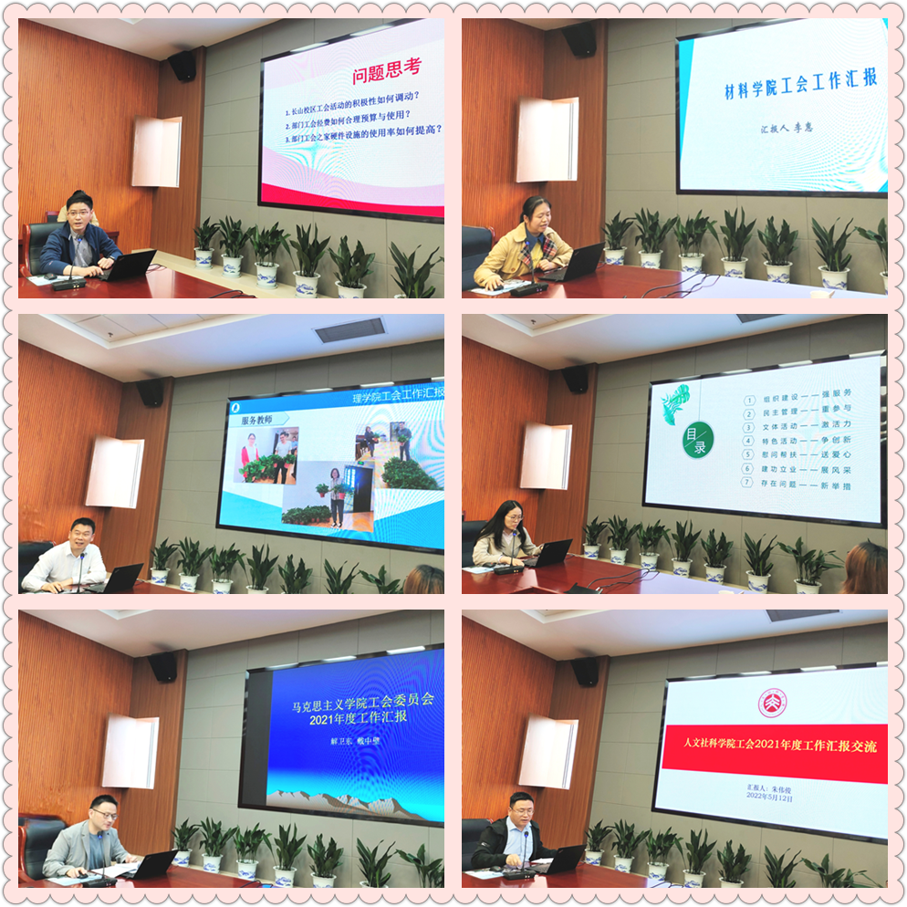 校工会常务副主席郭永强作了开场讲话,他表示,本次活动旨在加强威尼斯官网工会干部交流工作、总结经验,提高基层工会的工作质量和水平,进一步推动威尼斯官网二级工会工作有新作为新发展。随后各位工会主席图文并茂地汇报了2021年度二级教代会、工会小家建设、服务教师、文体活动、疫情防控形势下的工会作为等方面的工会工作。