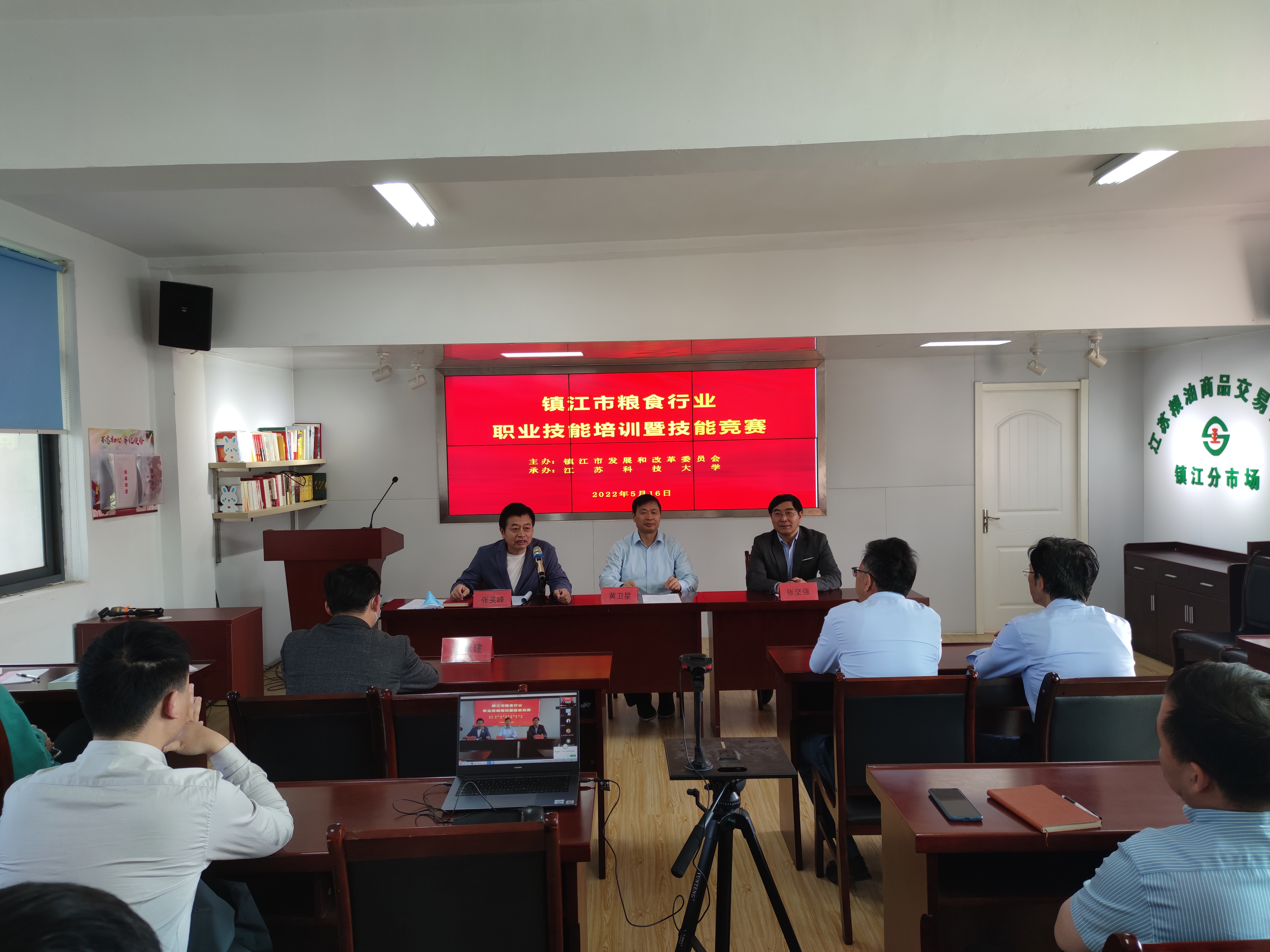 5月16日上午,镇江市粮食行业职业技能培训班在镇江市粮食中转库举行开班仪式。镇江市发改委党组成员、四级调研员黄卫星,市发改委组织人事处张英峰处长,910023威尼斯继续教育学院张坚强院长,粮食学院余永建副院长以及来自镇江市辖区粮食系统54名学员通过线上线下结合的形式参加了开班式。开班式由市发改委组织人事处张英峰处长主持。