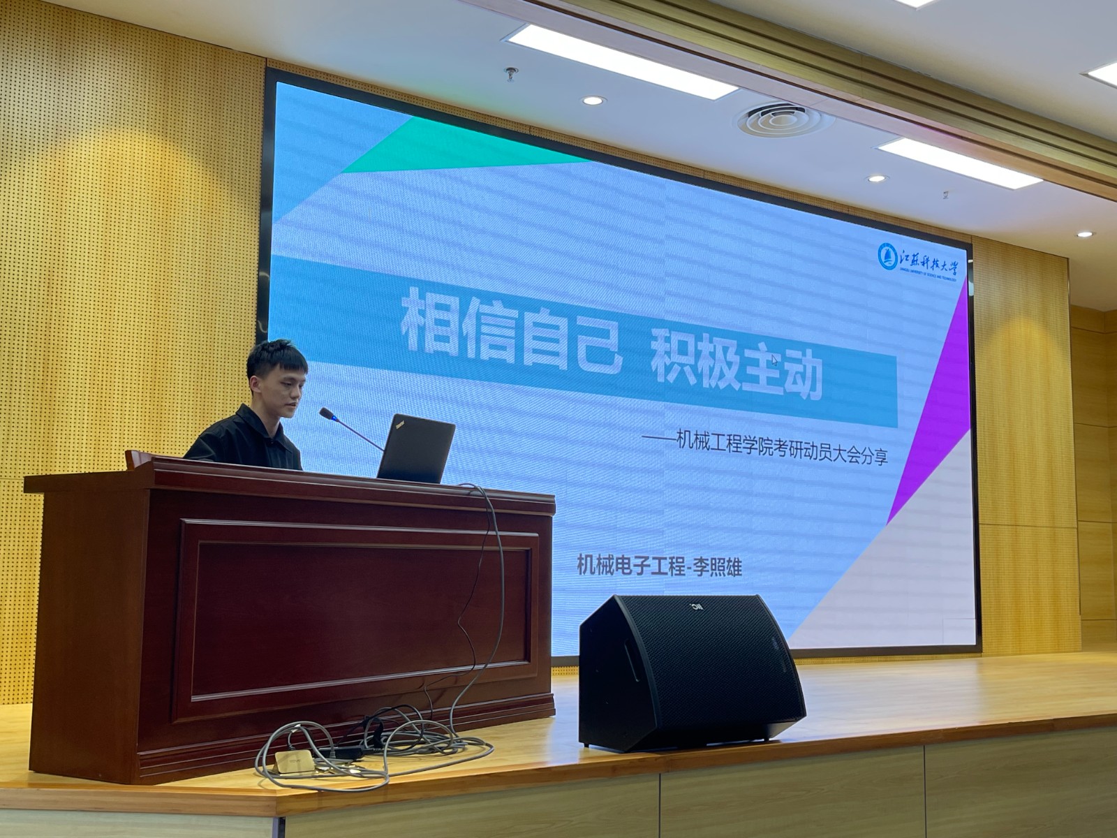 2023届考研序幕已经拉开,为进一步激发我院学子考研热情,明确考研目标,制定考研规划,机械工程学院于2022年5月19日下午在长山校区图书馆B102报告厅召开2023届考研动员大会。本次大会由学院副院长钟伟教授主讲,学院思政辅导员李福来主持,2018级优秀考研学子、2019级全体本科生参加会议。