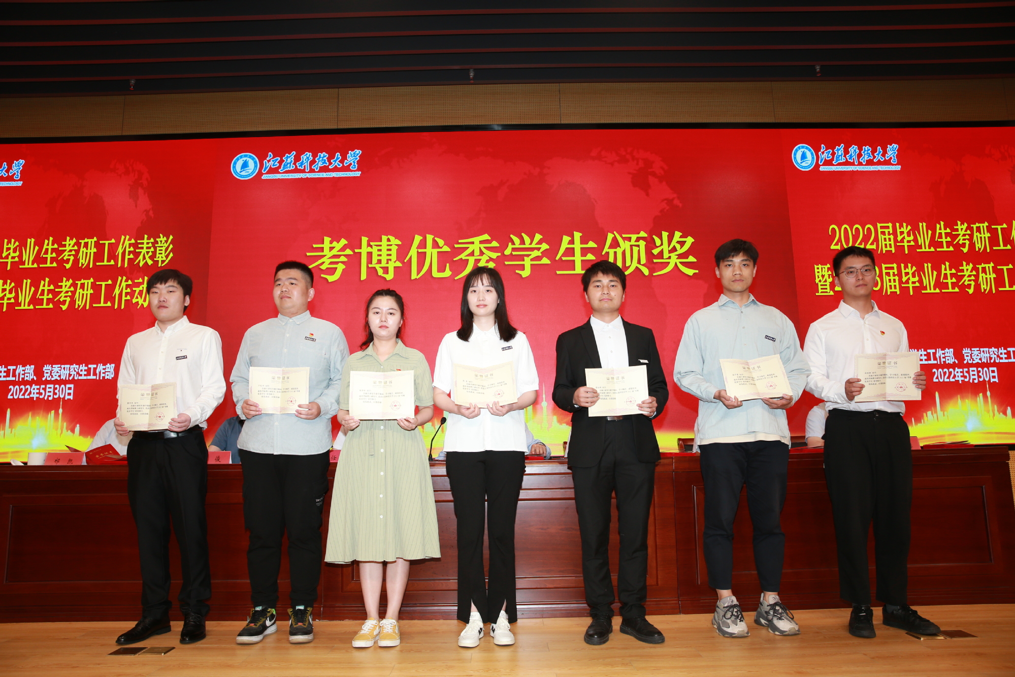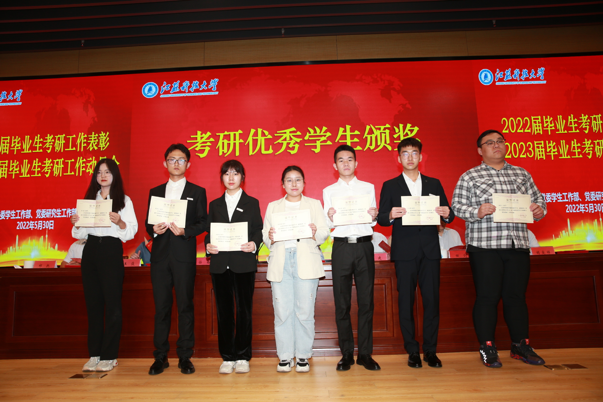 主席台领导依次为考博优秀学生、考研优秀学生、考研工作优秀指导教师、考研工作先进集体颁奖。能动学院院长温华兵、考博优秀学生韩束丹、考研优秀学生吕延栋分别代表先进集体、考博优秀学生、考研优秀学生,与大家分享成功经验。