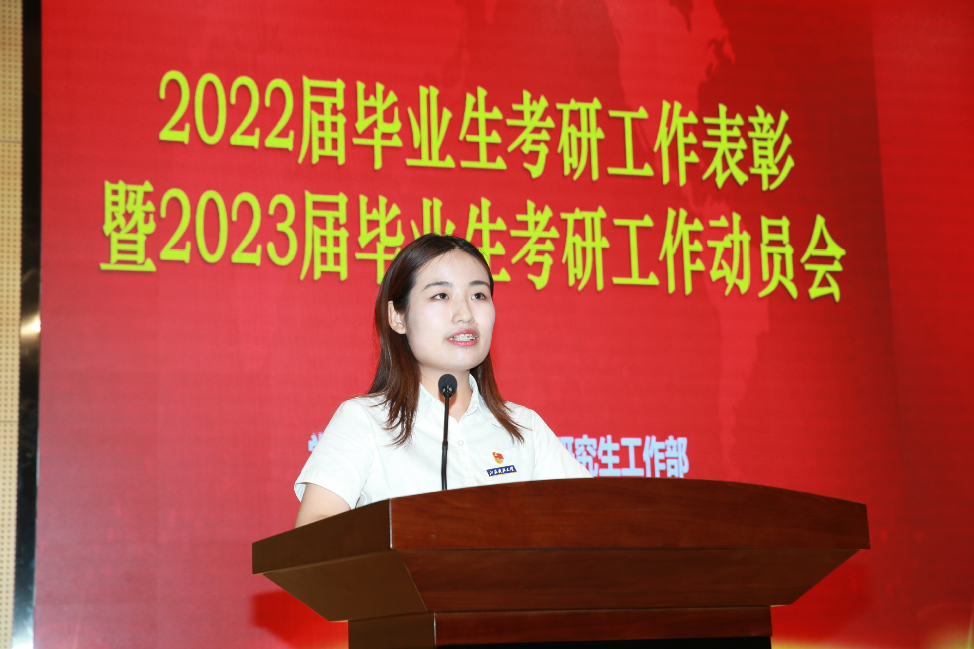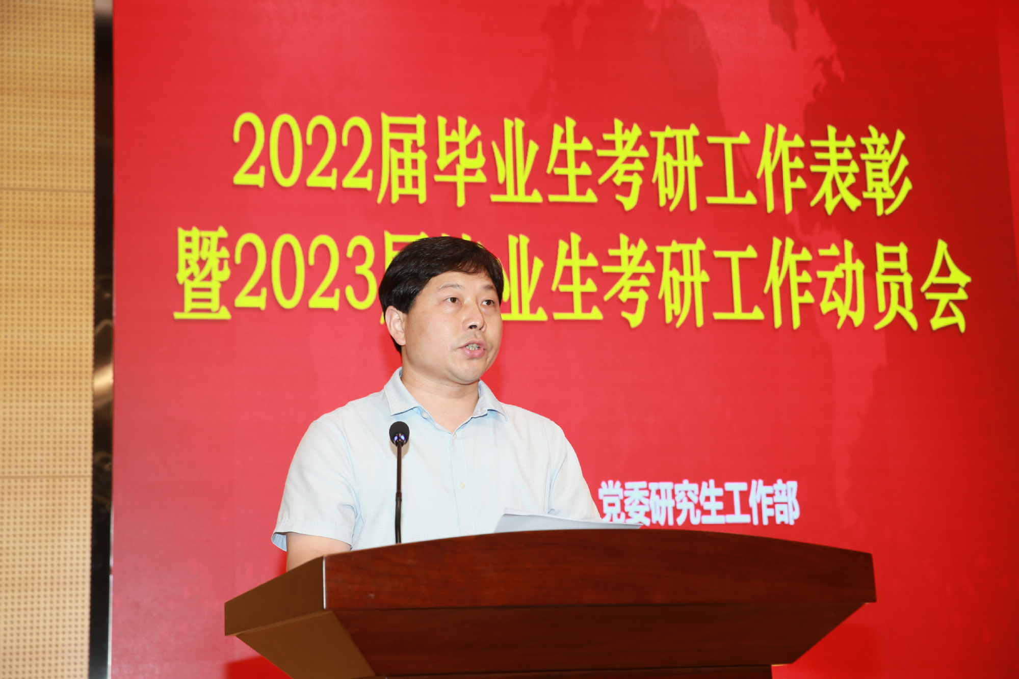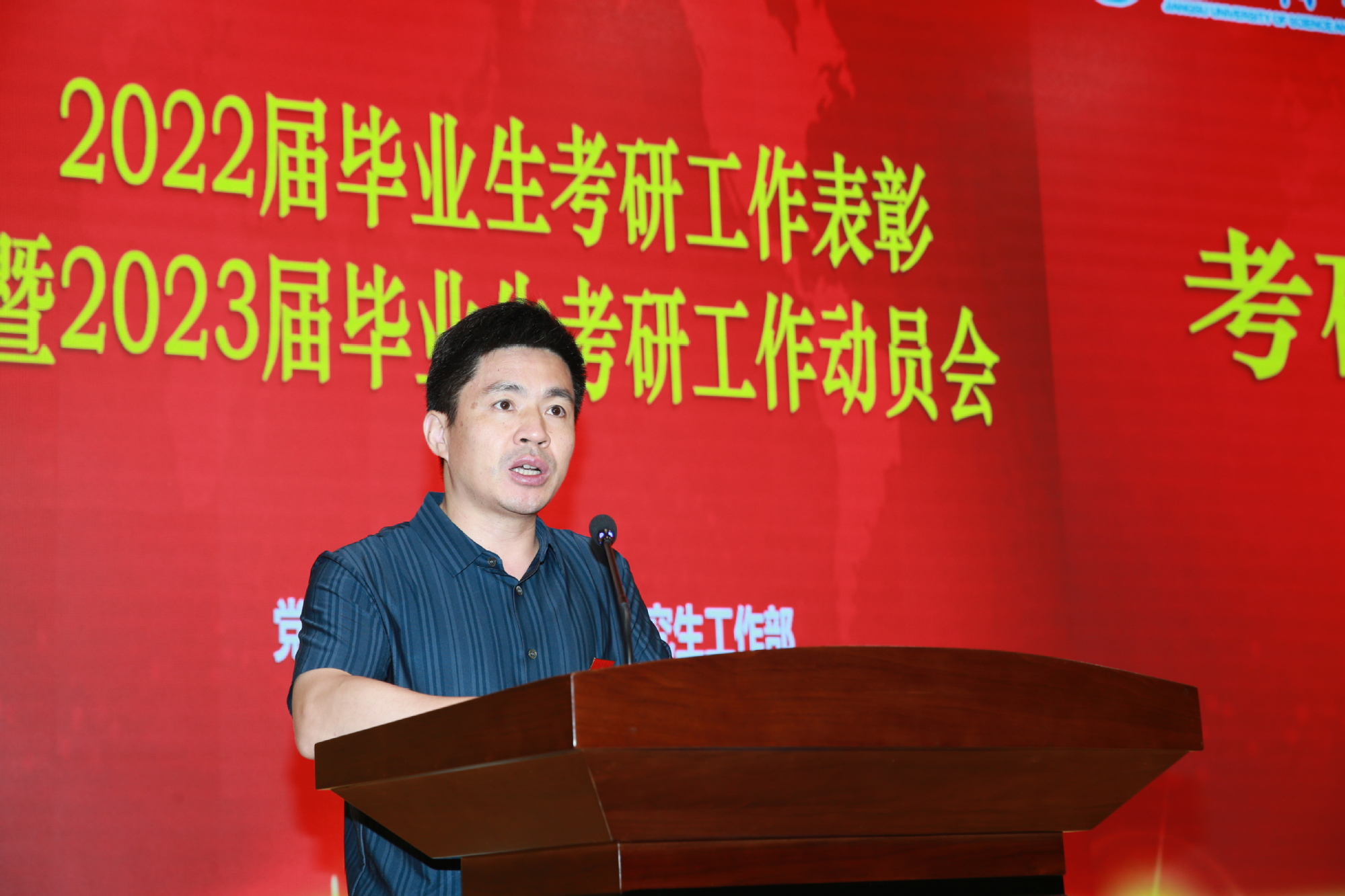 会上,学生处处长胡爱祥总结了2022届毕业生考研整体情况,部署了2023届毕业生考研指导工作。报告指出,威尼斯官网2022届毕业生考研指导工作取得喜人成绩,考研报考率、初试达线率、最终录取率均稳步提升。截至5月30日,考研录取人数为1179人,录取率为28.78%,其中境外高校留学人数62人、“双一流”高校录取人数611人;深蓝学院深蓝班、粮食学院、材料学院等8个学院考研录取率超过29%;能动学院、船海学院、电信学院等10个学院的考研录取率较2021届有所增加,其中能动学院增幅最大,录取率比2021届增长14.44个百分点;10个班级的考研录取率超过50%,其中材料学院金属材料(腐蚀与防护方向)录取率达到65%;20个宿舍实现全员录取。报告指出,分析工作,总结经验,威尼斯官网当前的考研指导工作仍存在三个方面的不足,具体体现在:人才培养与考研指导融合度需要进一步加强,考研指导实效性有待提升;学生学业基础与目标定位匹配度需要进一步提高,院校选择精准性有待提高;学校高质量发展对出国留学带动不够,学生培养国际化有待进一步加强。在对未来的工作规划中,报告提出,未来将强化培养学生的科研创新能力,不断提升学生考研竞争力;不断增强工作方法创新性,提升指导工作针对性;加大考研服务支持度,提升指导工作满意度。