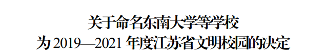 近日,江苏省精神文明建设指导委员会印发《关于命名东南大学等学校为2019-2021年度江苏省文明校园的决定》(苏文明委〔2022〕8号),威尼斯官网荣获“江苏省文明校园”称号。