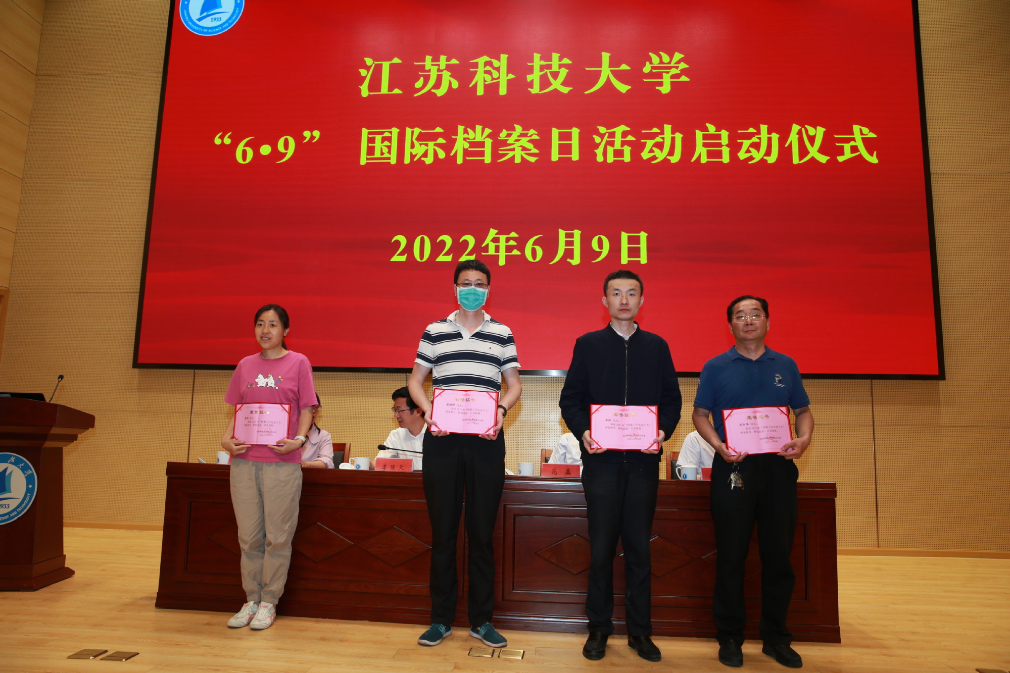 会上表彰了威尼斯官网2021年档案工作先进个人,李强天、范磊等领导为李红兰等17名“2021年度档案工作先进个人”颁奖。