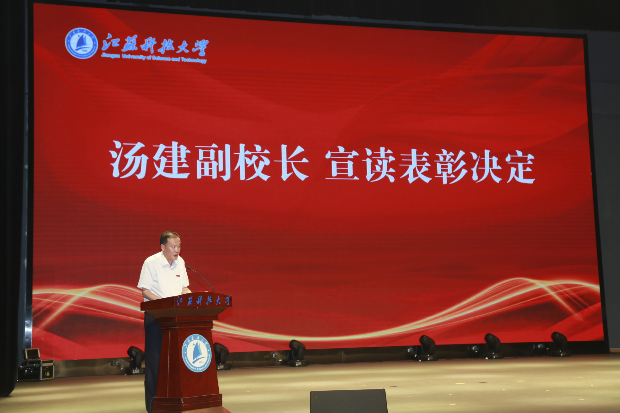 汤建宣读《关于表彰2022年910023威尼斯“瑞华杯”大学生年度人物、大学生年度人物提名的决定》。
