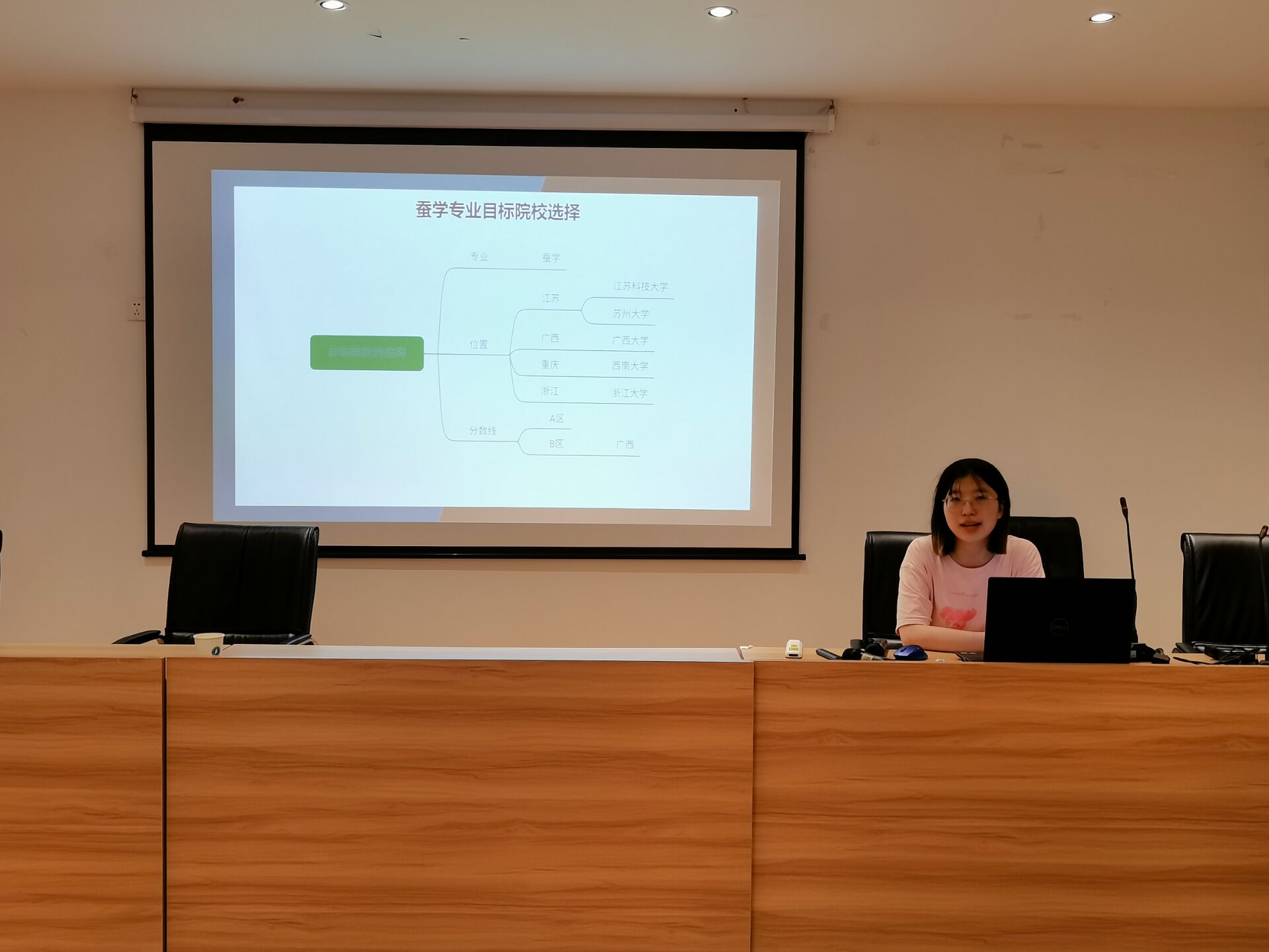 在蚕学、生物技术专业专场考研分享会中,考入中国科学技术大学的洪天乐同学对考研形势和学习方法进行了指导,他结合自身学习的经验和考研的实际情况为同学们进行了详细的讲述。建议同学们在前期复习中了解考点的分布情况,强调了专业课真题的重要性。上岸苏州大学的成嘉璐同学结合自身考研备考经历以及考研过程中的注意事项进行了分享。她讲述了自己在政治考研中写错答题卡位置的经历,告诫同学们在考试中需要细心一点,即使出现了意外,也要沉得住气,继续完成接下来的考试。“道阻且长,行则将至”,成嘉璐指出,考研的道路是艰辛的,只有脚踏实地、坚持不懈,从当下出发,从现在出发,才能收获想要的结果。