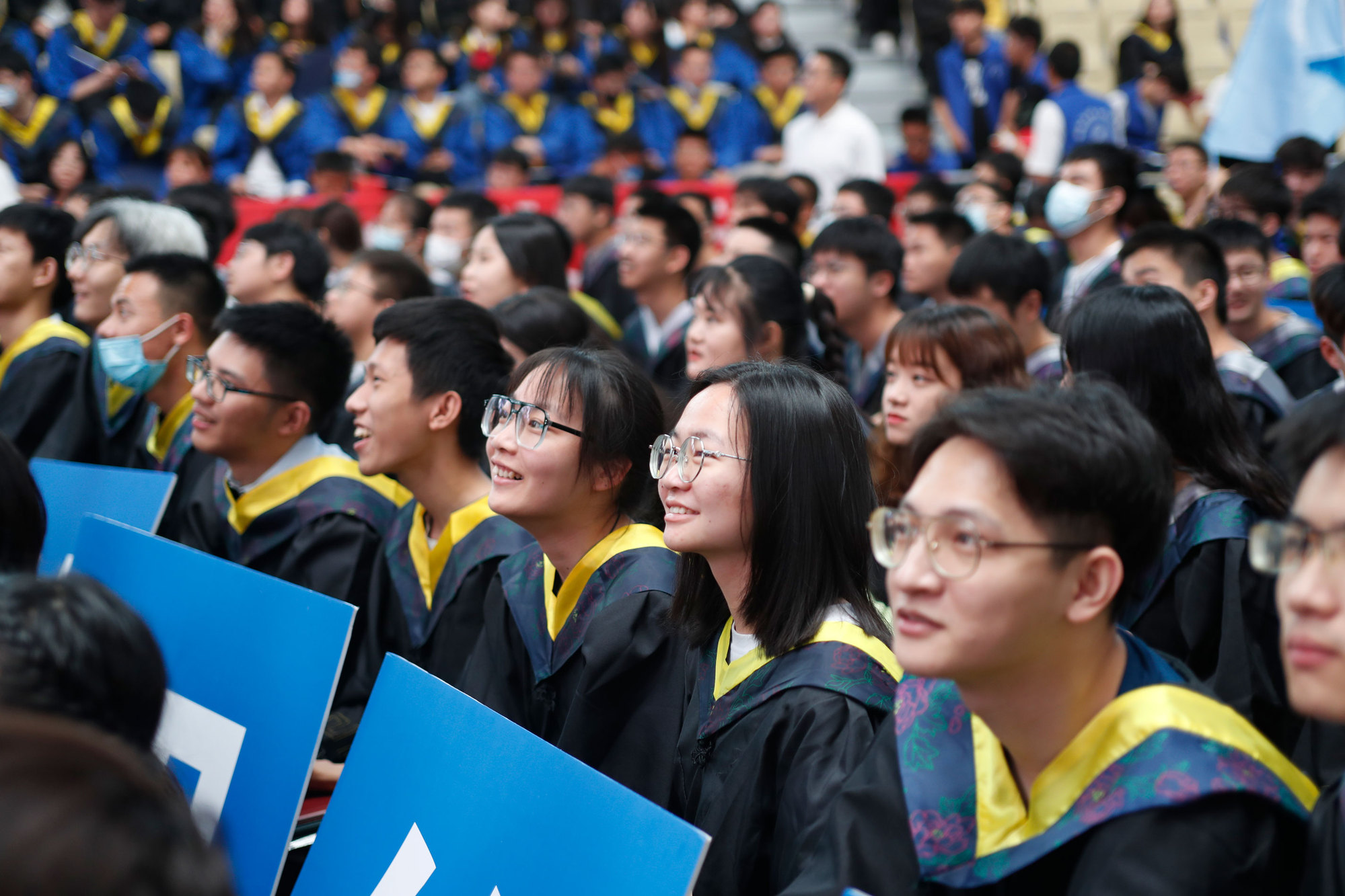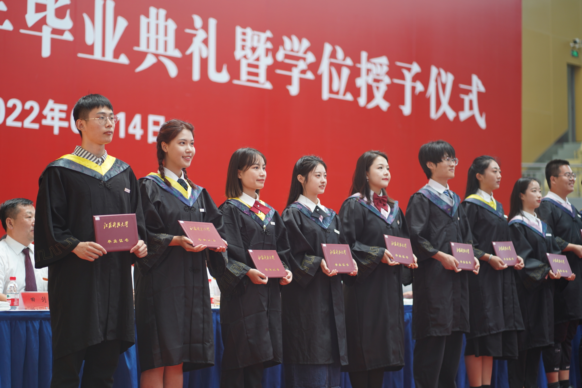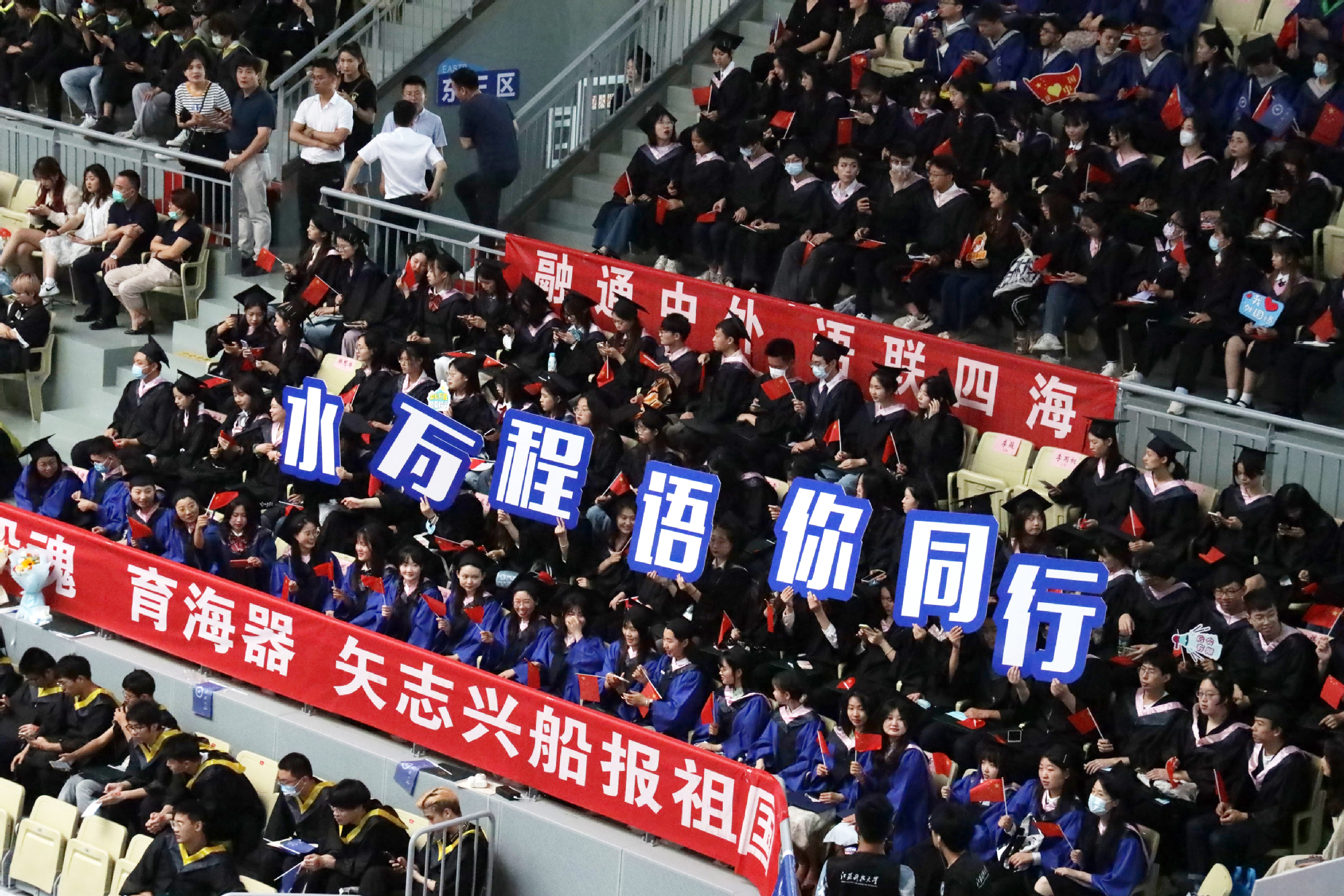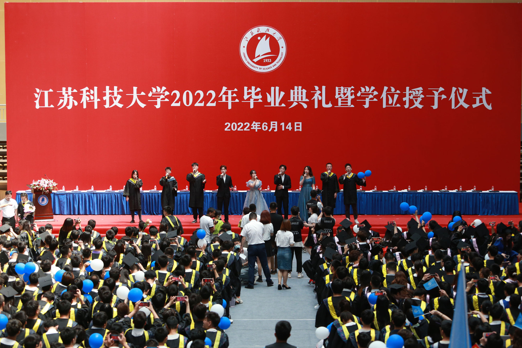 2022届毕业生当中,有1179名同学收到了研究生录取通知书,其中,境外高校留学62人、“双一流”高校录取611人,全员录取的考研学霸寝室有20个;186名同学成为学校新成立的海洋学院的首批毕业生;有22人报名参军立志保家卫国;有2885名同学作出了就业选择,其中到船舶行业单位工作的有281人,践行兴船报国梦想。“你们燃烧了青春的卡路里,也拼出了青春硬实力”,周南平细数闪亮的“江科大女孩”和“江科大男孩”在江科大奋斗的青春故事,为用专业技能服务广大蚕农的朱大林同学骄傲,为被中铁集团孟加拉分公司录取孟加拉国留学生马林同学叫好,向460余名化身“大白”“小蓝”“红马甲”的同学表达谢意……