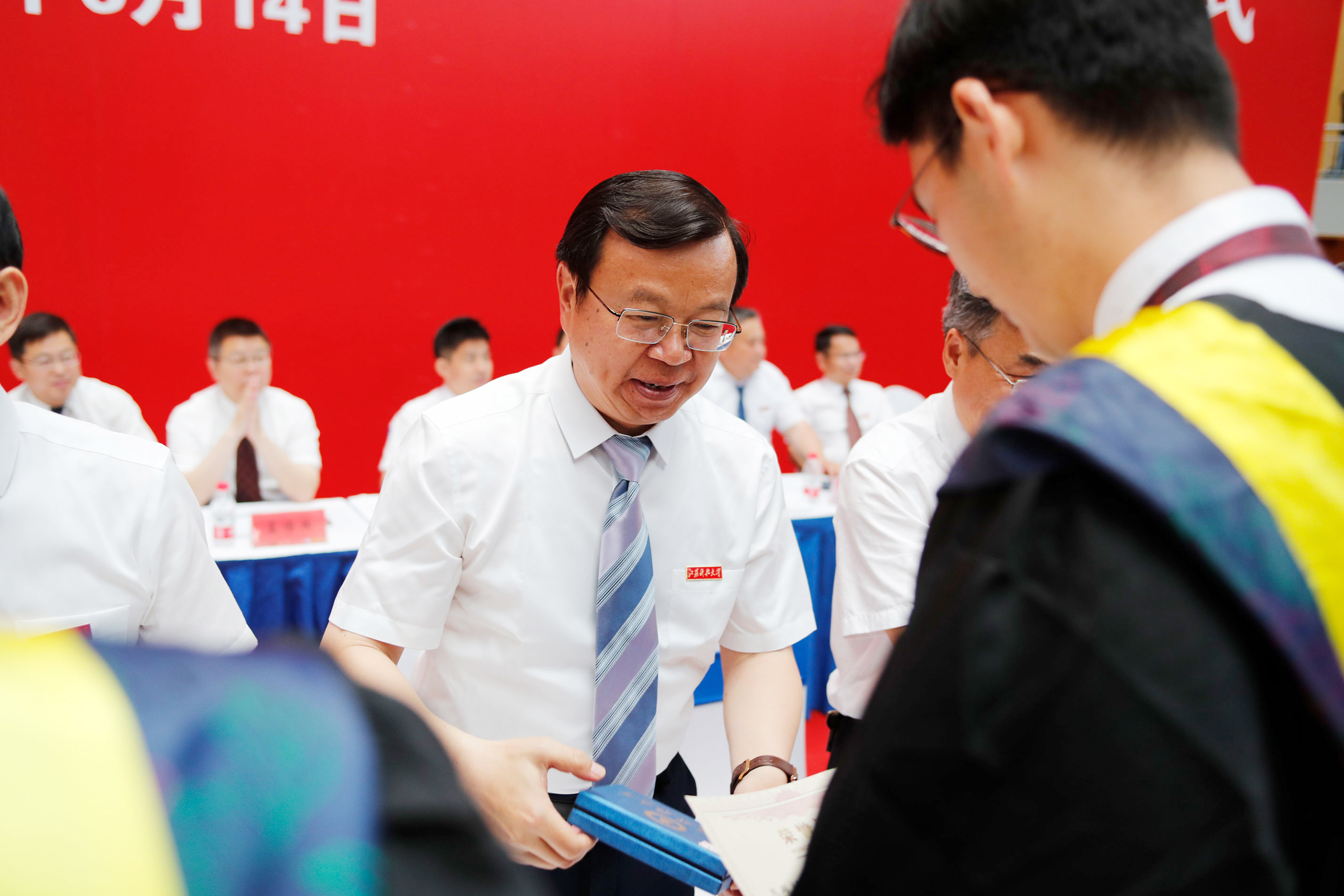 1990届校友、扬州中远海运重工有限公司总经理翟亚军结合自身成长经历和多年来的工作经历,期望毕业生们“勤学不辍,练就过人本领;海纳百川,铸就博大胸怀;脚踏实地,培育从容定力;胸怀家国,展现使命担当。”