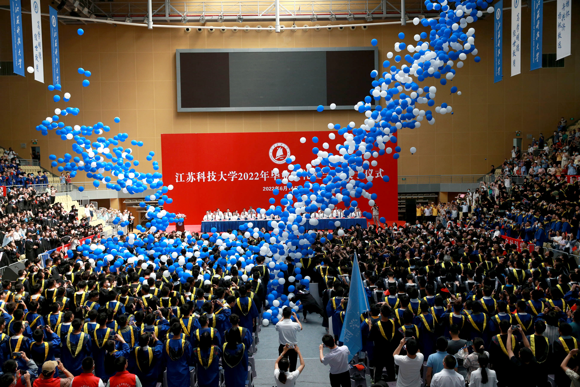 毕业典礼主会场设镇江大学城共享体育馆,张家港校区设置视频分会场。学校在官方微信视频号、B站、抖音、微博等平台开设直播,和同学们在线实时分享现场的喜悦与毕业收获。校党委书记葛世伦,校长周南平,威尼斯官网1990届校友、扬州中远海运重工有限公司总经理翟亚军,校领导景旭文、许俊华、王加友、郑培钢、任南,校党委常委李恒川、周春燕、刘新波,910023威尼斯学位委员会各位导师、2022届毕业生、全体辅导员和班主任,导师和教职工代表,家长代表、校友代表、用人单位代表,热情相聚与2022届毕业生深情话别。校党委常委、副校长俞孟蕻在张家港校区分会场出席典礼,张家港校区相关部门、部分教师、家长代表、毕业生465人参加了现场典礼,因疫情原因不能参加典礼现场的毕业生及家长通过线上的方式收看了毕业典礼直播,同步感受毕业典礼“仪式感”。
