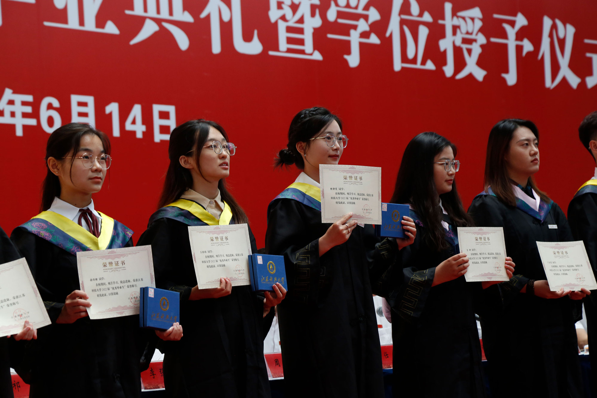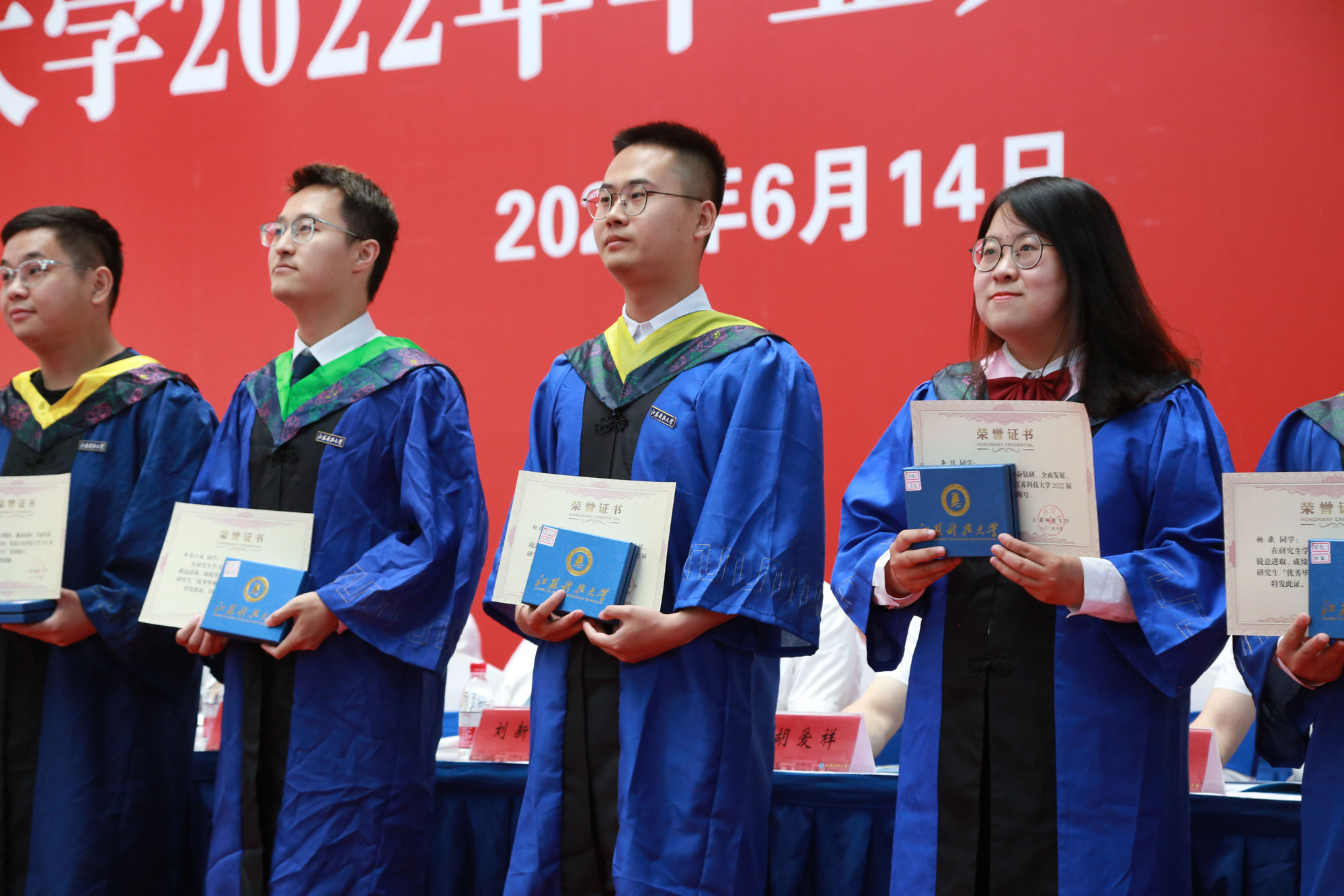 党委常委、副校长任南宣读《关于准予2022届本科学生毕业的决定》《关于授予2022届本科毕业生学士学位的决定》。副校长王加友宣读《关于准予2022届博士、硕士研究生毕业的决定》和《关于授予2022届研究生博士学位、硕士学位的决定》。校党委副书记、副校长景旭文宣读《关于表彰910023威尼斯2022届本科“优秀毕业生”的决定》《关于表彰910023威尼斯2022届研究生“优秀毕业生”的决定》。校领导和导师们为毕业生代表发放毕业证书,为优秀毕业生颁发荣誉证书、赠送毕业印章。