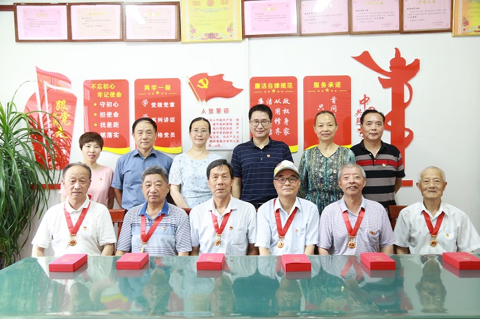 会上,离退休党工委委员分别为6位老党员颁发“光荣在党50年”纪念章,并合影留念。