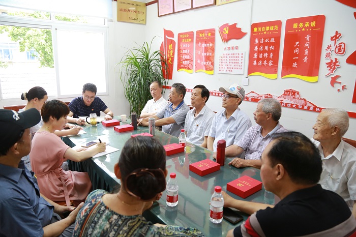 6位退休老党员大多都曾奋战在教学科研一线,他们分别发言,追忆峥嵘岁月,重温奋斗历史。结合自身工作和生活经历,畅谈了见证中国共产党百年奋斗历程和中国特色社会主义建设伟大进程的切身体会,以及深切感受到的以习近平同志为核心的党中央的关怀和温暖,表达了要坚定不移听党话、感党恩、跟党走的信心和决心。