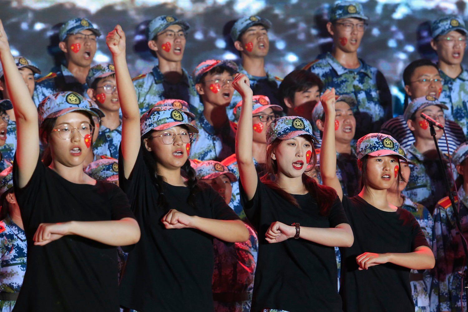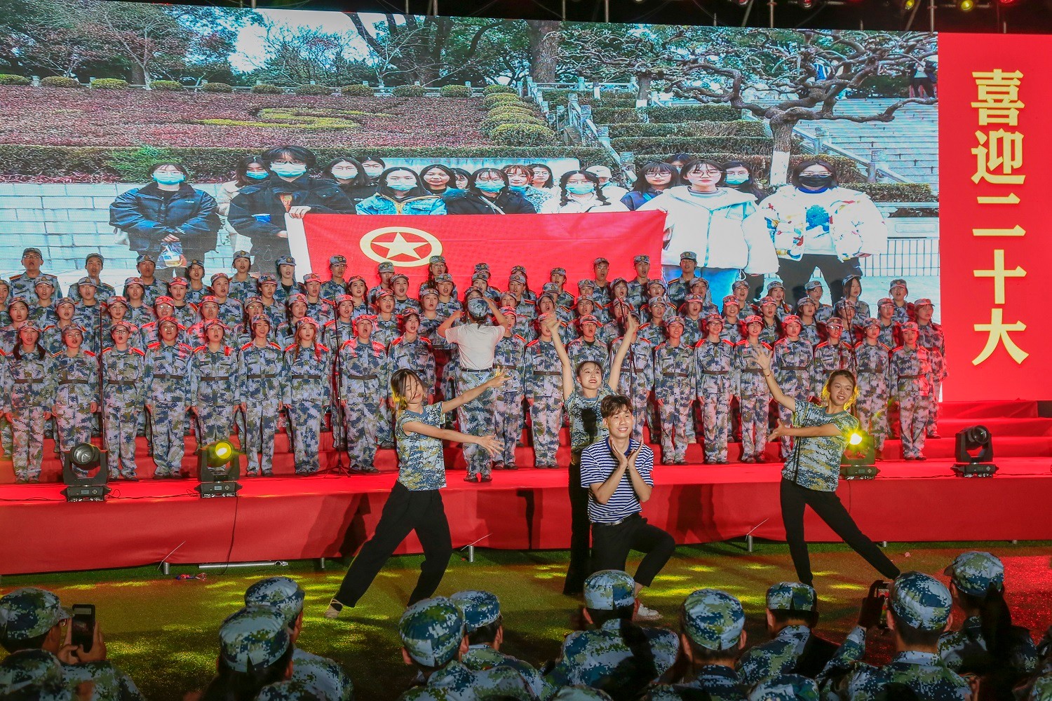 首个合唱节目是由75名来自各营的教官携手演唱。军歌唱响的那一刻,大学生教官们化身成为真正的军人,嘹亮的歌喉、饱满的士气感染了在场每一个观众,也给同学们带来了巨大惊喜。穿插于合唱比赛中的情景朗诵《我们的青年时代》,一句句铿锵的言语,一声声雄浑激昂的呐喊,饱含着对祖国的深情、对党的歌颂,红色的文字是青年人坚韧的信仰,汹涌的感慨是对党光辉历程的赞歌。精彩纷呈的表演博得了现场师生的阵阵掌声。