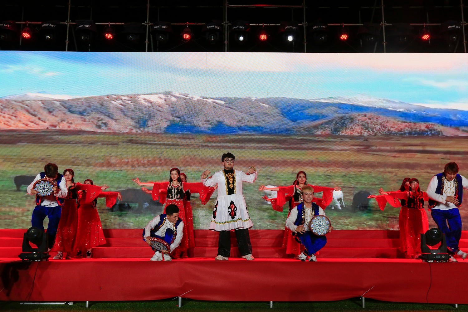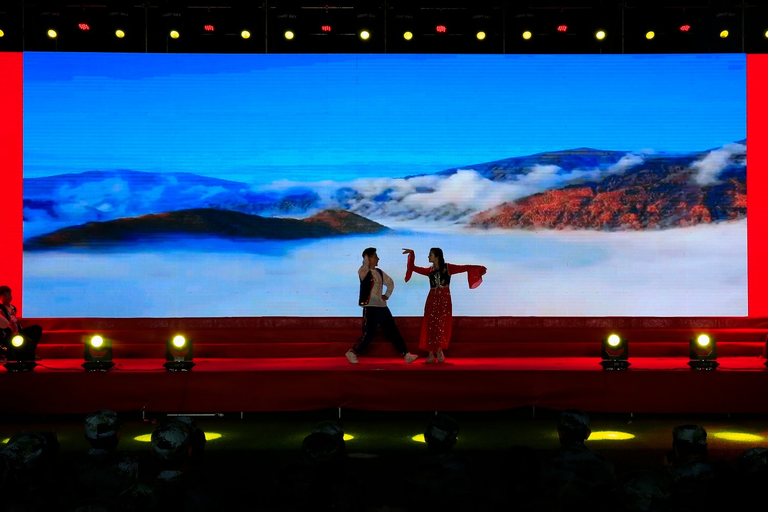 比赛以军训营为参赛单位,15支队伍分别由辅导员老师领队并参与其间。各营合唱曲目皆选自著名军歌曲目,鼓舞士气的歌声最响亮,歌颂祖国的乐曲最悠扬,由维吾尔族同学演出的舞蹈《麦西莱普》,舞出了民族团结的力量。《没有共产党就没有新中国》,更没有我们如今的幸福时代;青年人是一个国家的先锋力量,《当那一天来临》,为了胜利我们要勇敢前进;《我爱你中国》《歌唱祖国》每一个激动人心的旋律无不体现出江科大人对祖国的热爱和对党的赞颂。