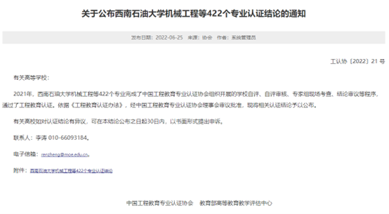 近日,中国工程教育专业认证协会发布《关于公布西南石油大学机械工程等422个专业认证结论的通知》(工认协〔2022〕21 号),威尼斯官网海洋学院电子信息工程专业完成了中国工程教育专业认证协会组织开展的学校自评、自评审核、专家组现场考查、结论审议等程序,通过工程教育认证,有效期为6年(2022年1月至2027年12月)。这标志着电子信息工程专业的质量实现了国际实质等效,进入全球工程教育的“第一方阵”。