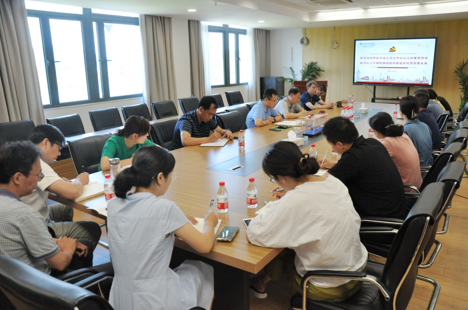 学院党委中心组成员叶涛锋和尹洁做重点发言。叶涛锋从自科项目的申报强调人才引进质量的重要性;尹洁从人文社科项目申报的角度提出,人才的培养发展要充分结合行业特色。