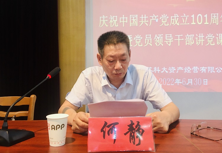6月30日下午,资产经营公司在梦溪校区第三会议室举行庆祝中国共产党成立101周年表彰大会暨党员领导干部讲党课活动,公司党工委委员、副总经理何静主持,党工委领导班子成员、党员及入党积极分子代表参加会议。