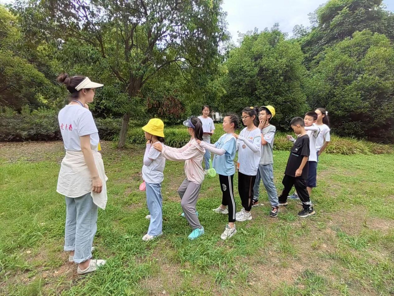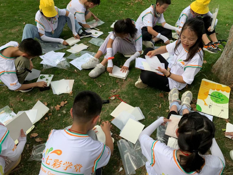 围绕“爱护”的主题品格,志愿者们带领孩子们前往露营基地,开展户外探险,制作树叶贴画。通过前几天的积累学习,孩子们进行了生物多样性的汇报,展示自己的学习成果。
