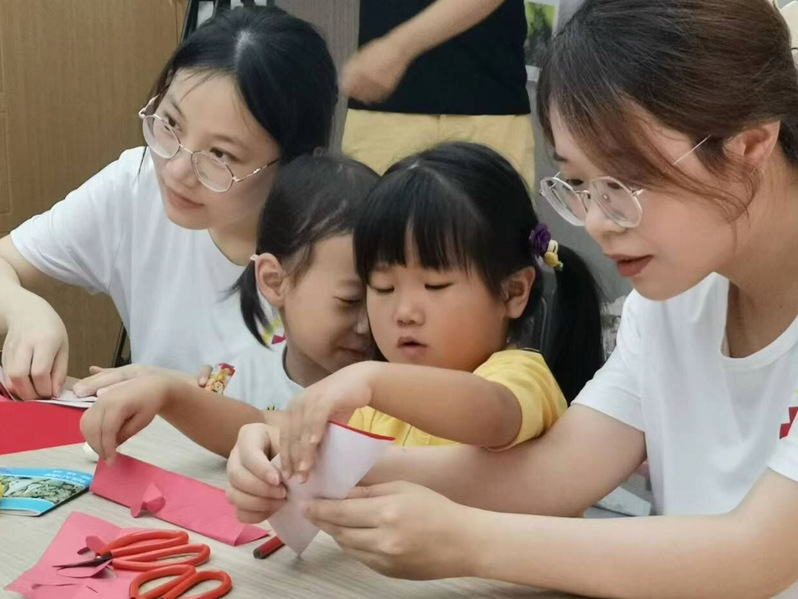 为丰富少年儿童假期生活,助力孩子们快乐成长,外国语学院“悦读相伴 语你童行”实践团于7月4日至7月8日来到镇江市丹徒区宜城街道崇文社区开展主题社会实践活动。在为期五天的陪伴中,大学生志愿者们围绕“团结、高效、勇敢、尊重、爱护”等五个品格,设计丰富多样的活动,带领孩子们动手体验,陪伴孩子们度过多彩假期。
