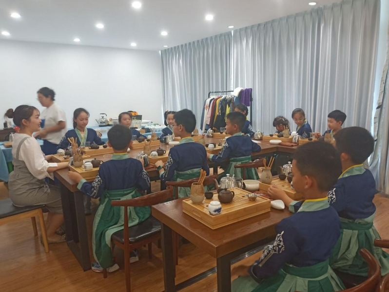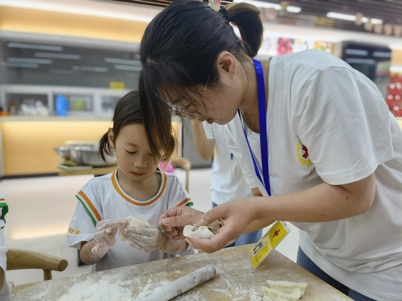 围绕着“勇敢”的主题品格,志愿者们陪伴孩子们一起学习了解古代茶艺。同时设置了开放厨房,志愿者们指导孩子们动手包饺子,让孩子们亲自体验服务的辛劳,体会劳动意义与价值。